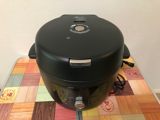 電源を入れる前。スッキリしたデザインです。大きさは一般的な炊飯器くらいです。