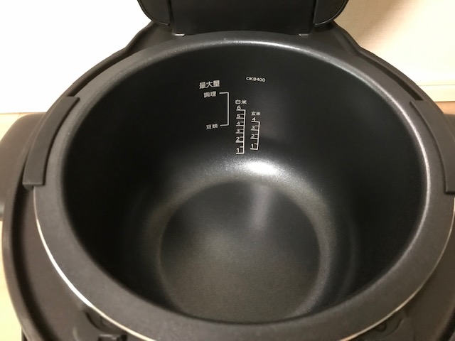 中は炊飯器のように「白米」「玄米」の目盛りも。