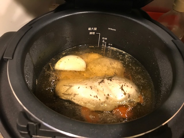 調理時間は120分。サラダチキンが仕上がりました。