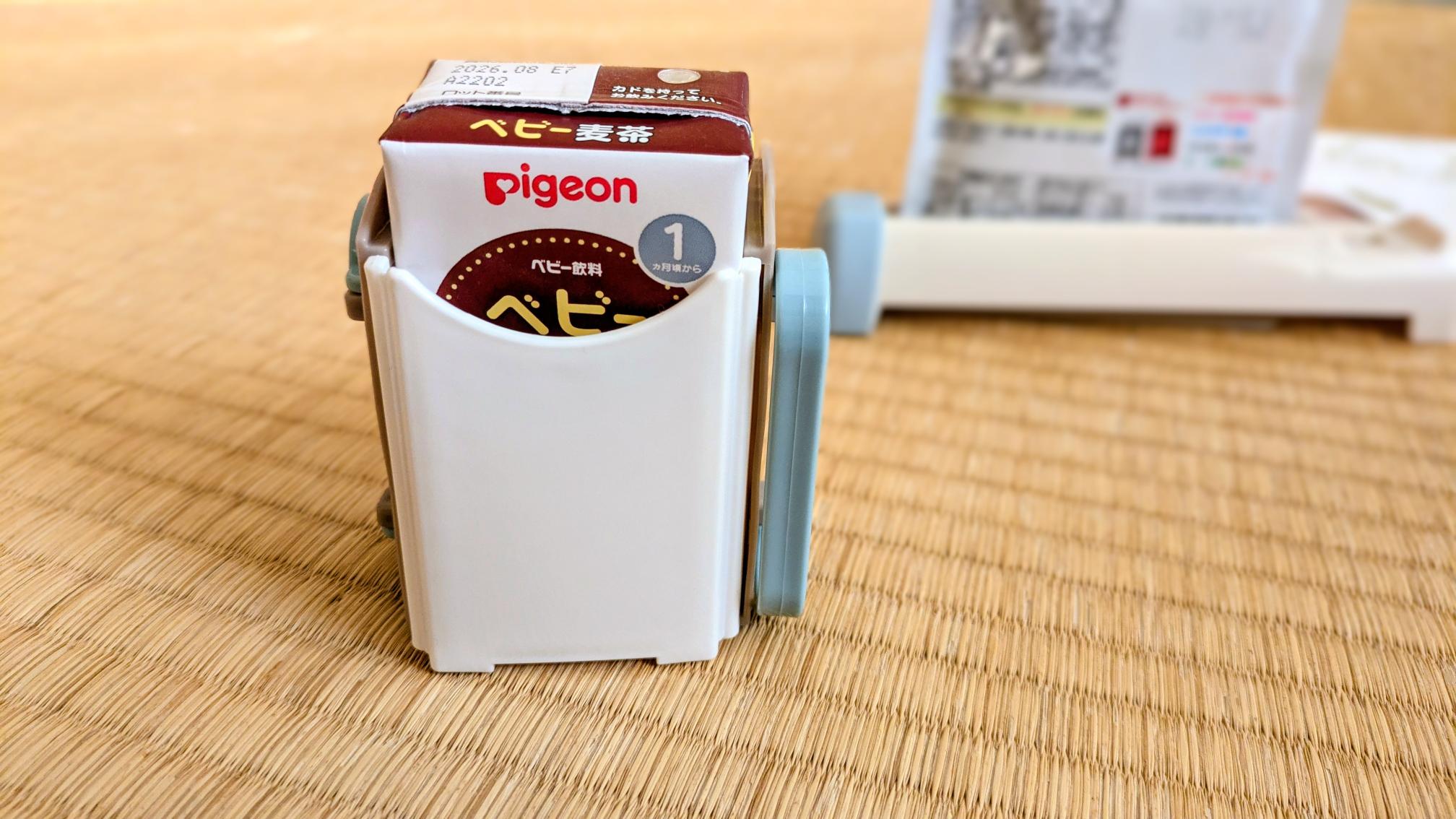 紙パックの飲み物を飲むときはやはり紙パックホルダーが便利。