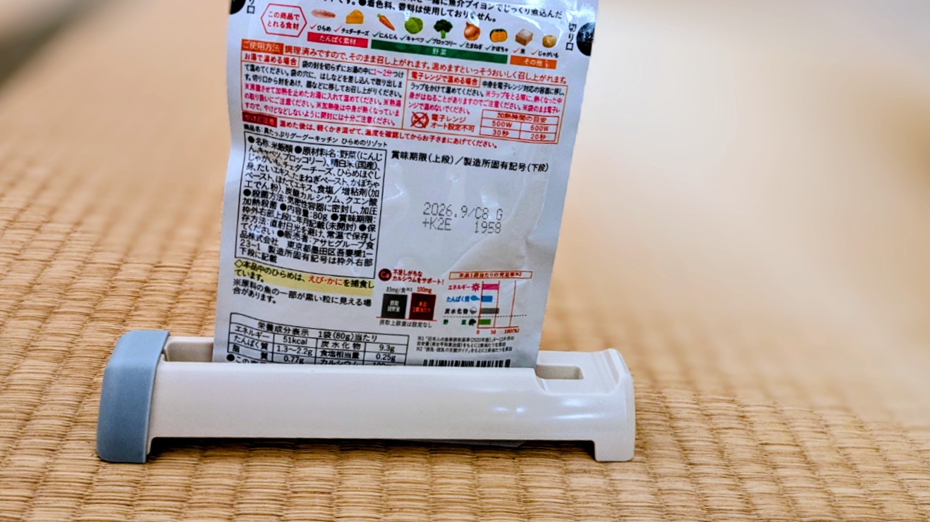 今回は宿で赤ちゃん用の食器を貸してもらったので、スタンドとしては使いませんでした。が、このスタンドでパウチを挟んで中身をきれいにしぼるのに便利です!