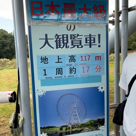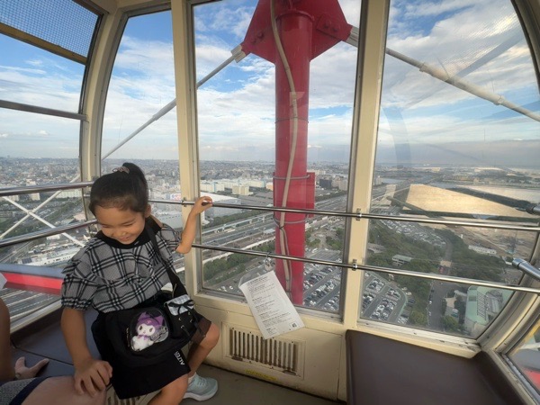 続いて、ダイヤと花の大観覧車へ。日本最大級のこの観覧車、なんと地上高117mだそう。こんなに大きい観覧車に乗るのは初めての娘はドキドキです。