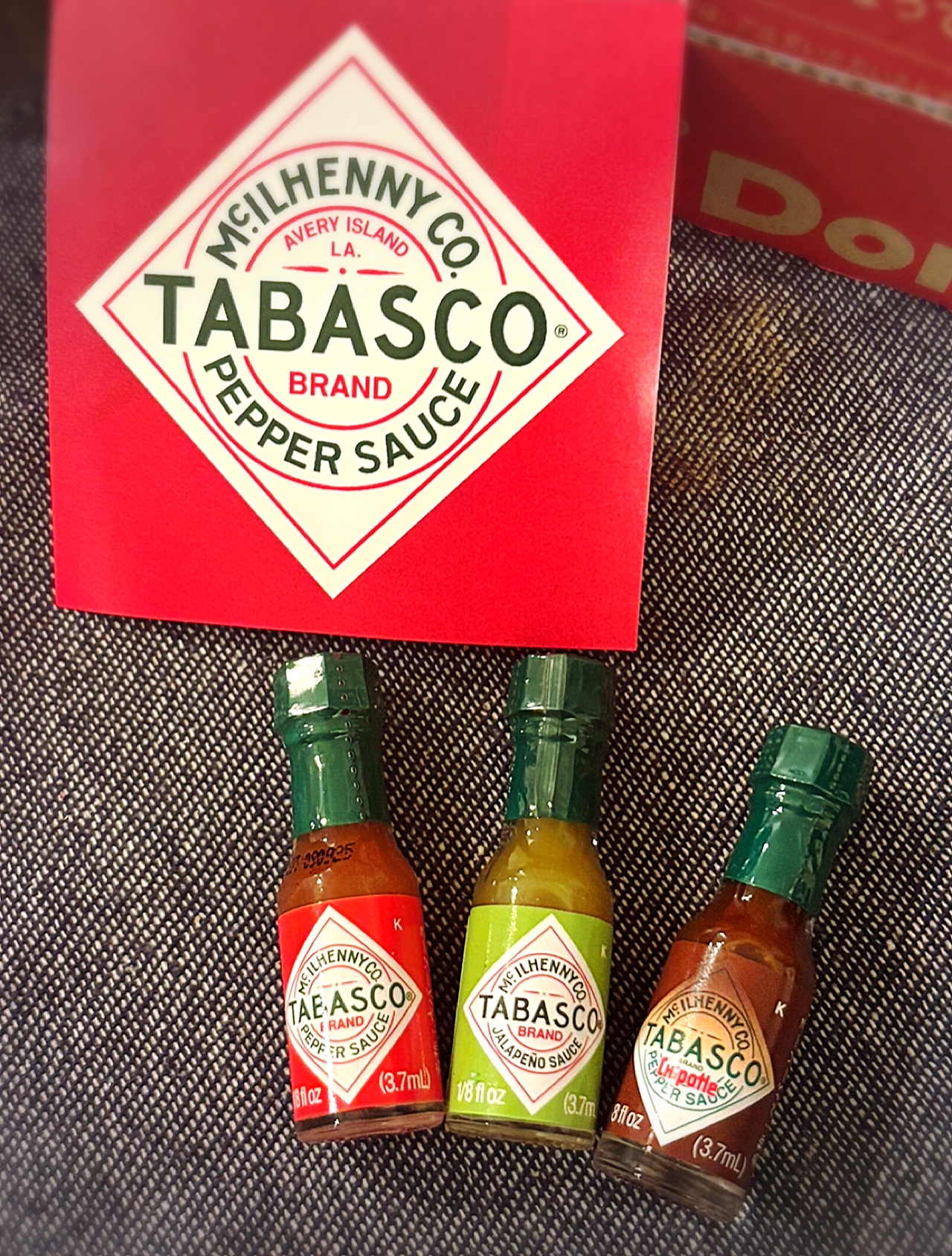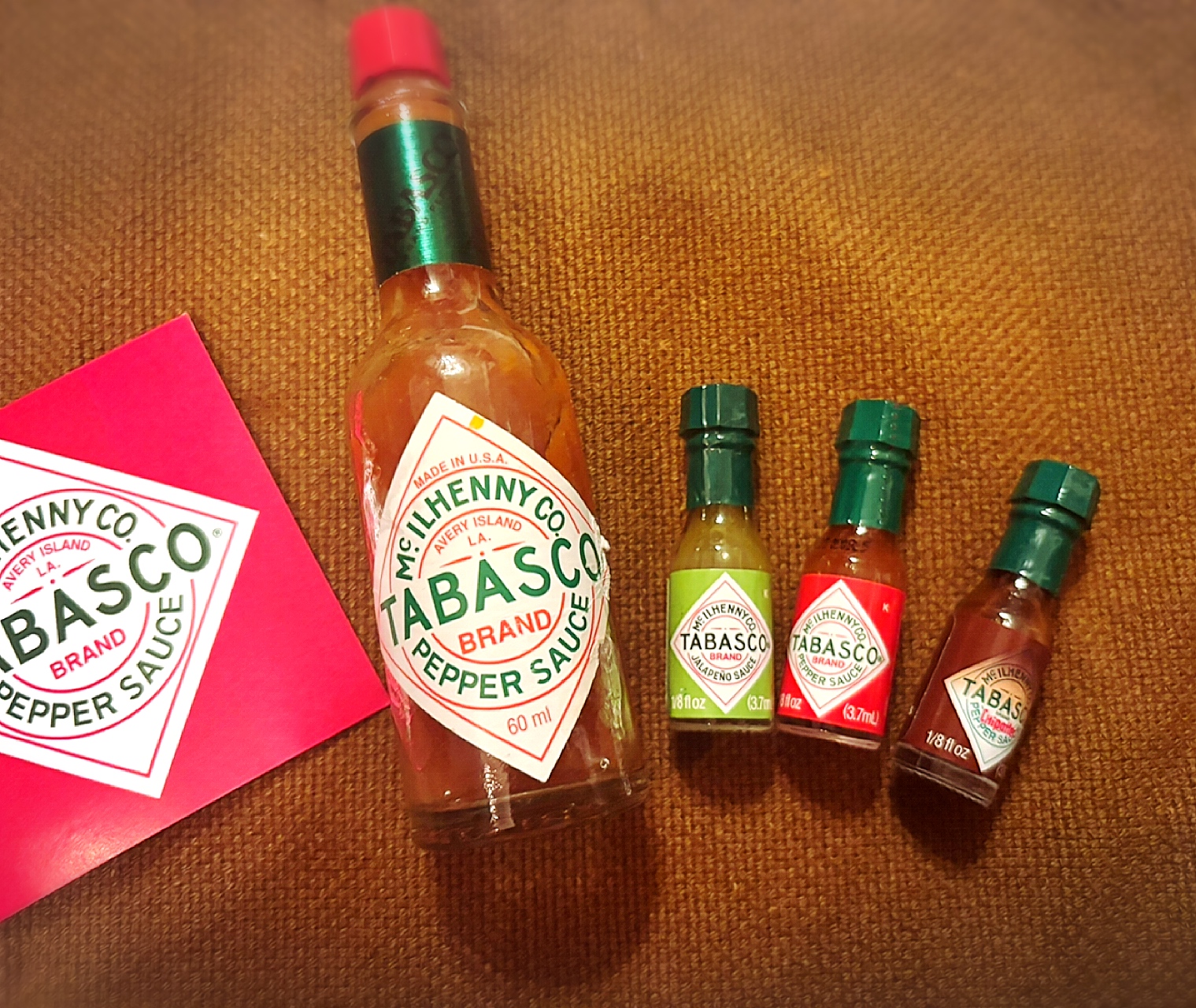 「TABASCOミニボトル3種セット」で、↑写真左から