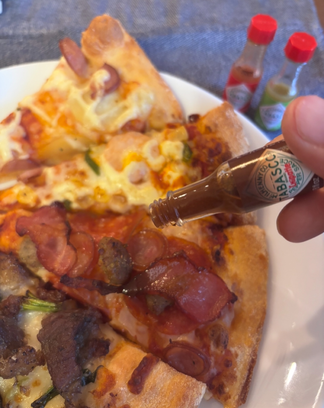 3種のタバスコを試せるミニボトルセットは、普段とは違うピザの味変にもぴったり!