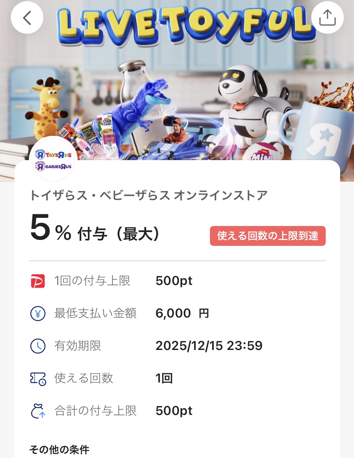 さらに、PayPayクーポン5%還元、トイザらスポイント還元もあり…