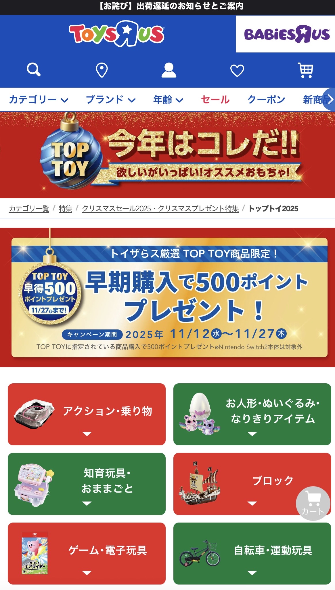 待ちに待った「ブラックフライデーセール」。トイザらスのオンラインストアがお得すぎた!トップトイ2025、ブラックフライデーセール、PayPayクーポンの活用。お得の合わせ技でより安く購入できるチャンス。早めの準備で、クリスマスプレゼントを少しでもお得にGETしてみませんか?