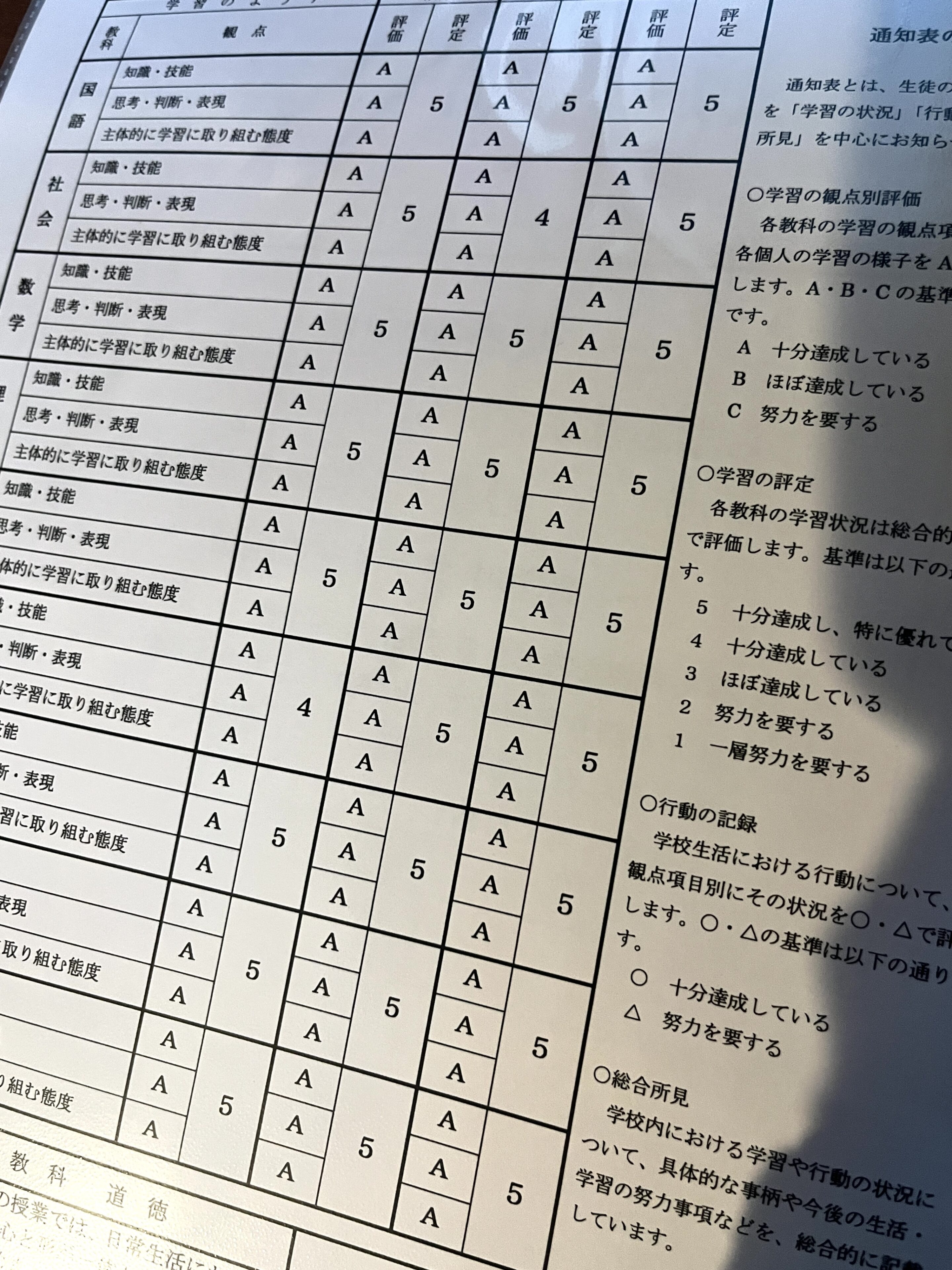 我が家の娘は小学校2年生になると「A・B・C」評価で、ほぼAですが時々Bがありました。