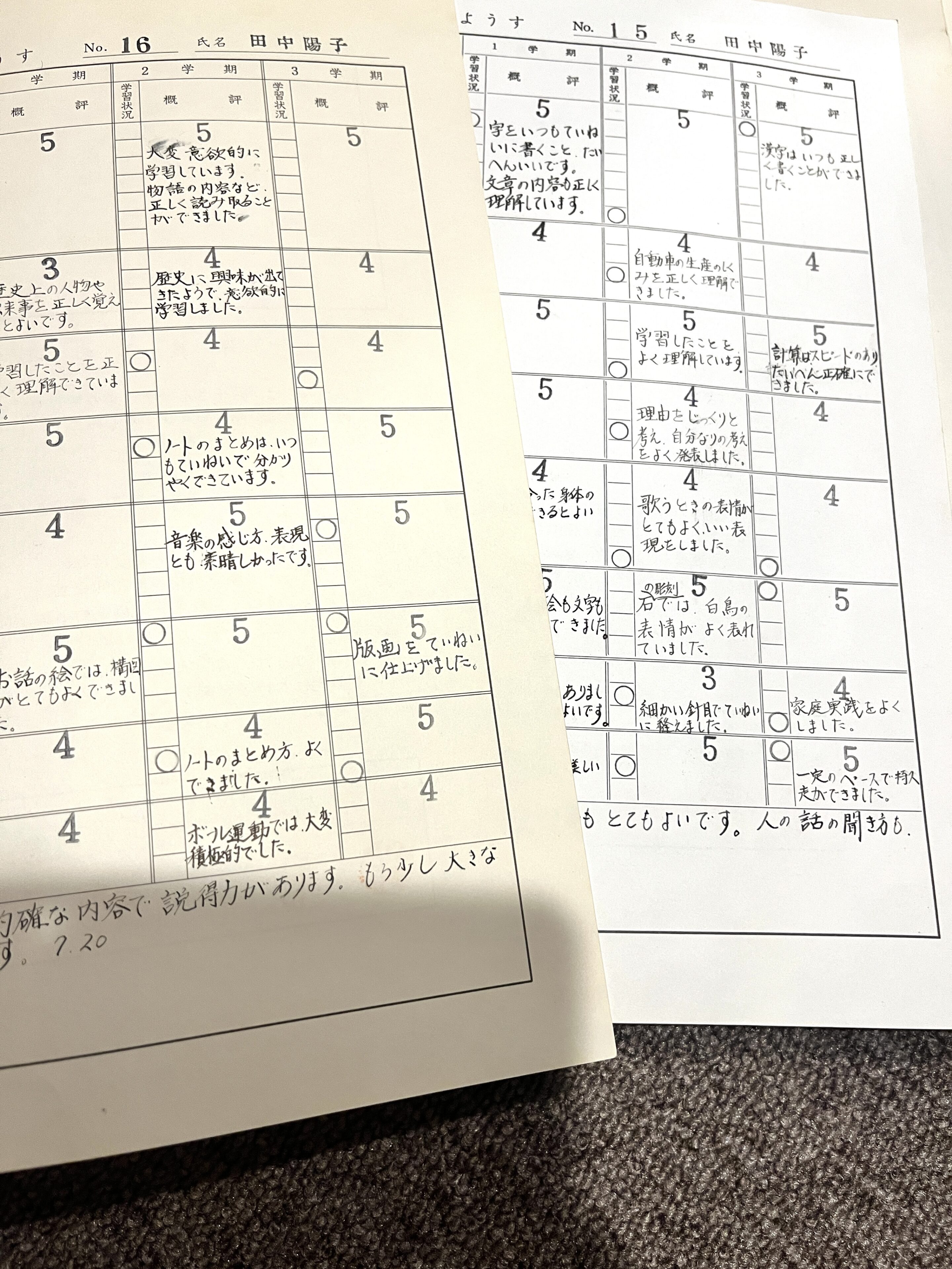 過去の成績表(通知表)を振り返ると、いい成績を取れるようになってきたのは小学校2年生頃からのようです。