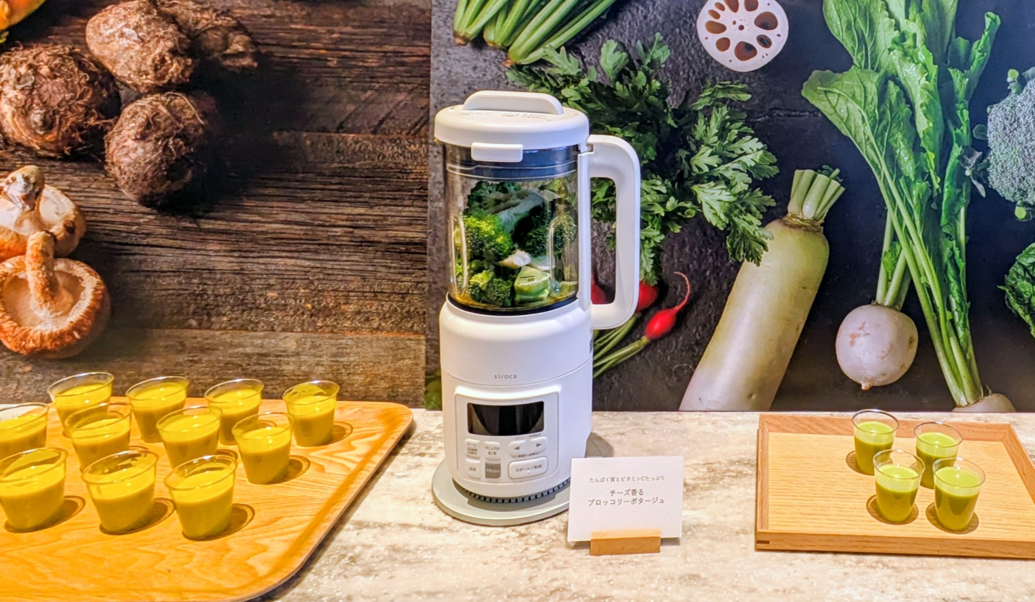 実際に「おうちシェフ BLENDER」で作った4種類のスープをいただきました。どれも美味しく、野菜が苦手な子どもでも喜びそうだなと感じました。