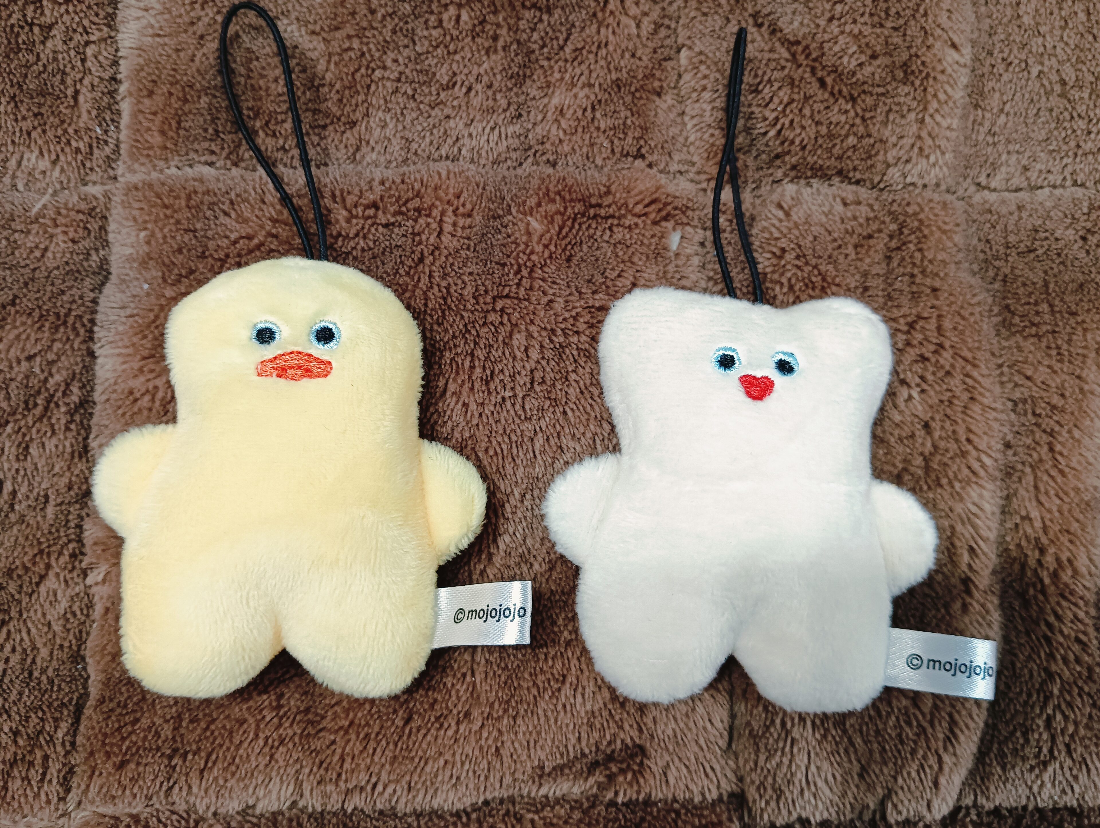 下のマスコットは、双子がクレーンゲームで取ったものです。