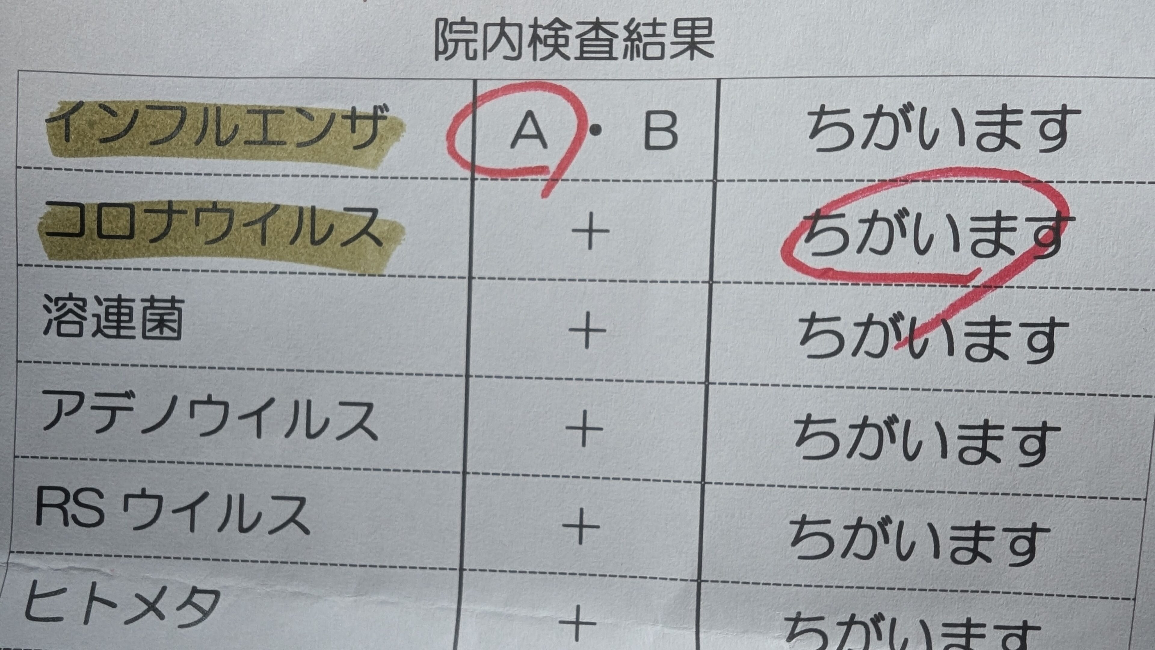 結果もその場ですぐに分かり、診断はインフルエンザでした。
