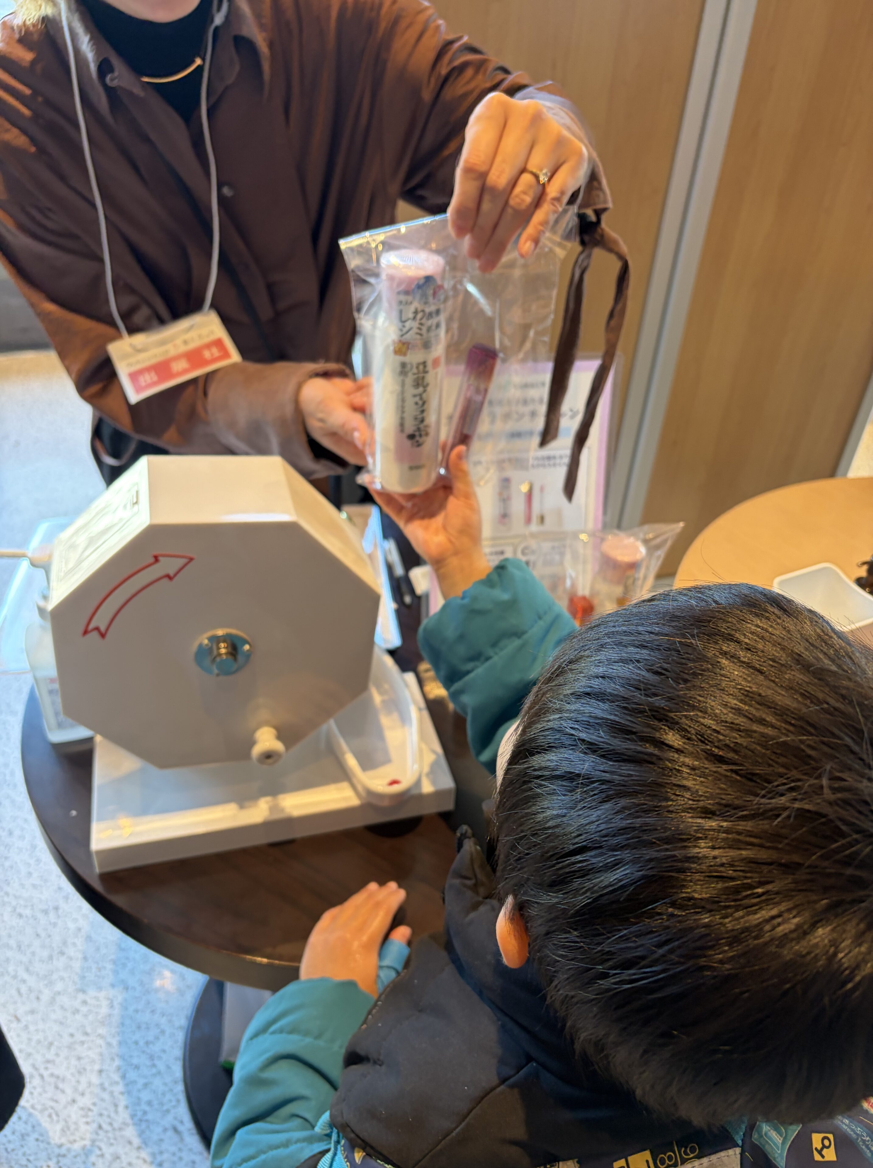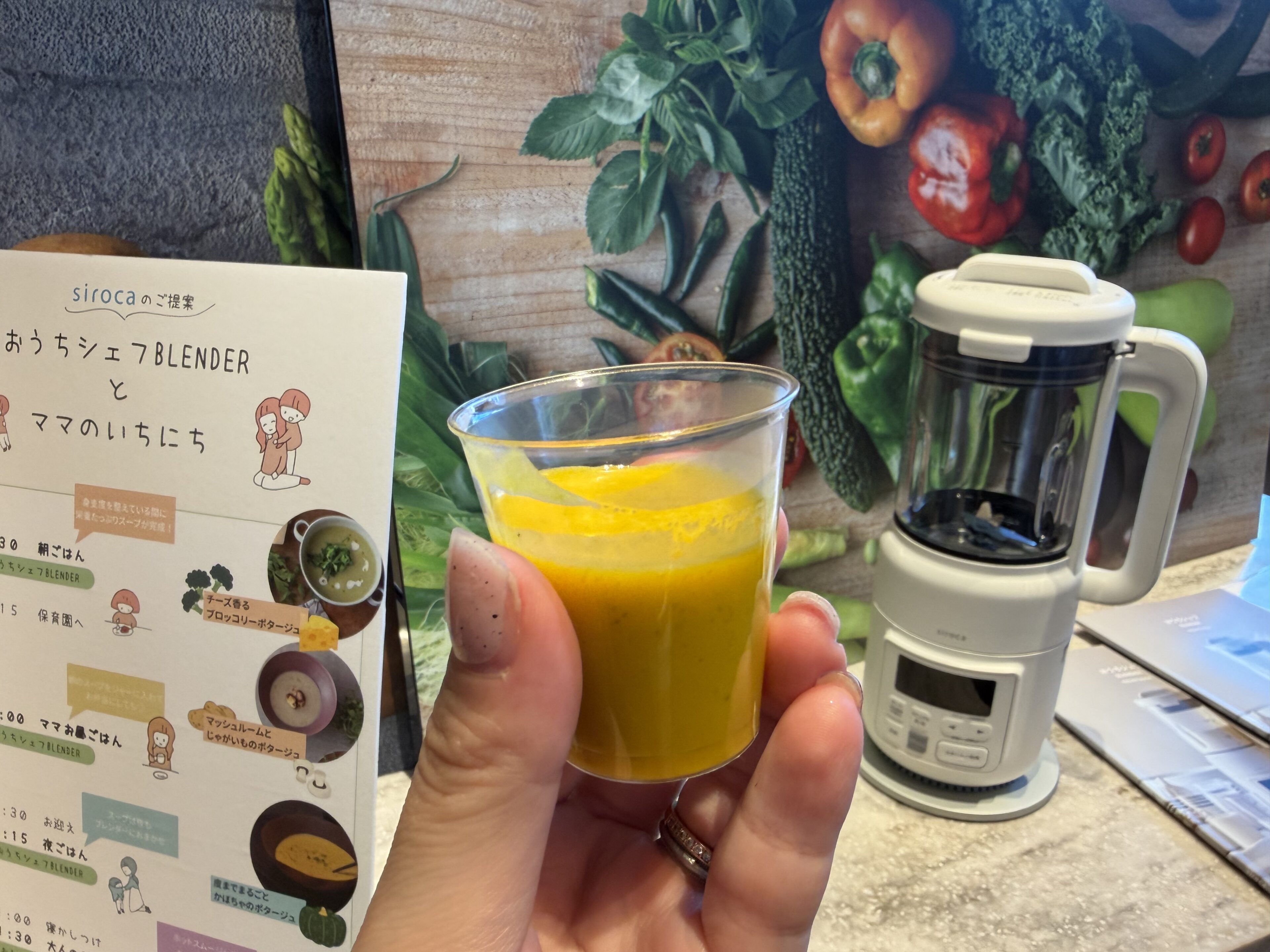 ブレンダーで作られたスープを試飲できるとのことで、全部試飲させていただきました。野菜が大好きな息子は、一口飲んだ瞬間に「これおいしい!」とごくごく。4種類すべてを完飲するほどお気に入りに。