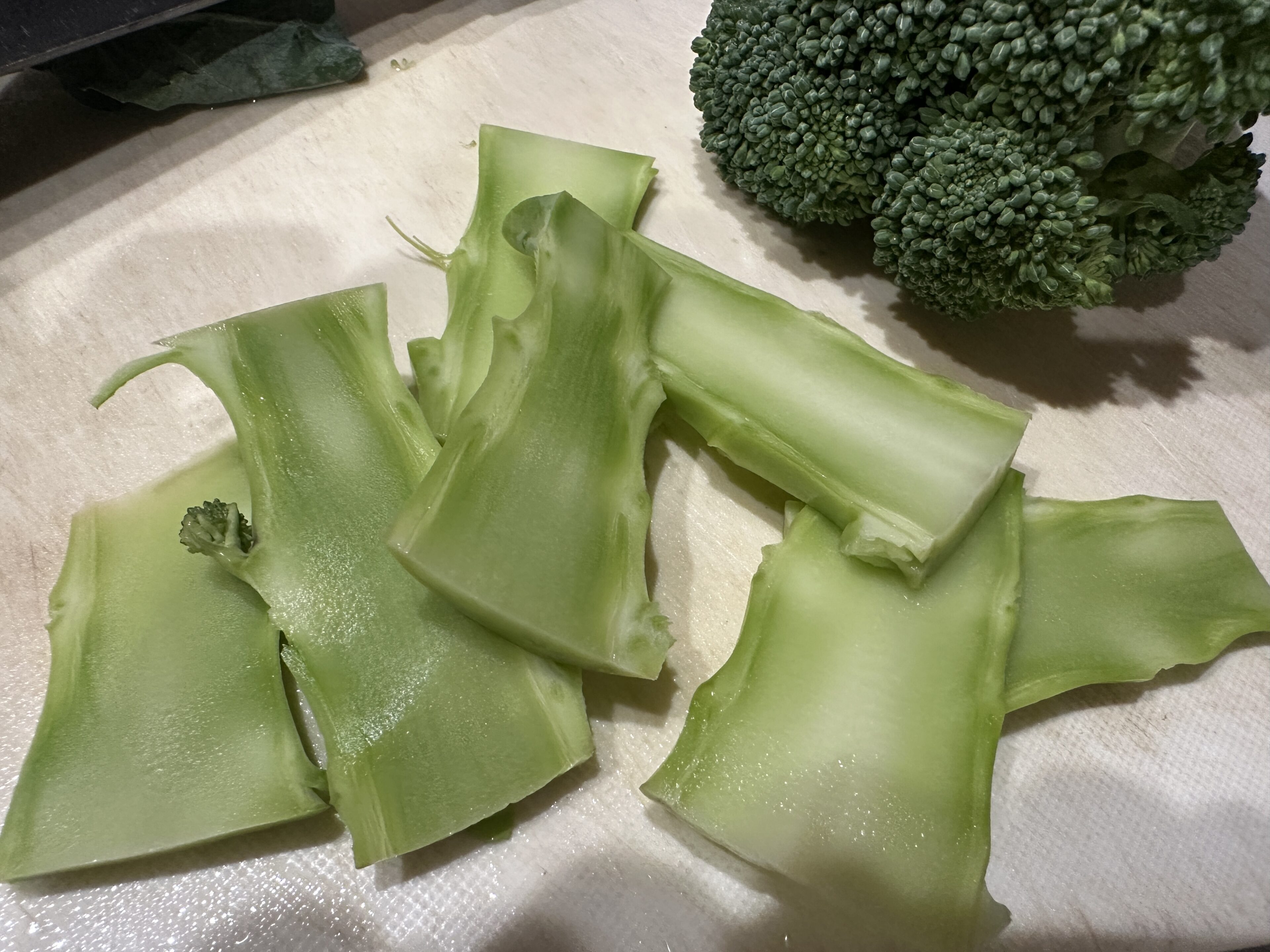 頭をザクっと切って、茎の部分は縦に5mmくらいでスライスしました。