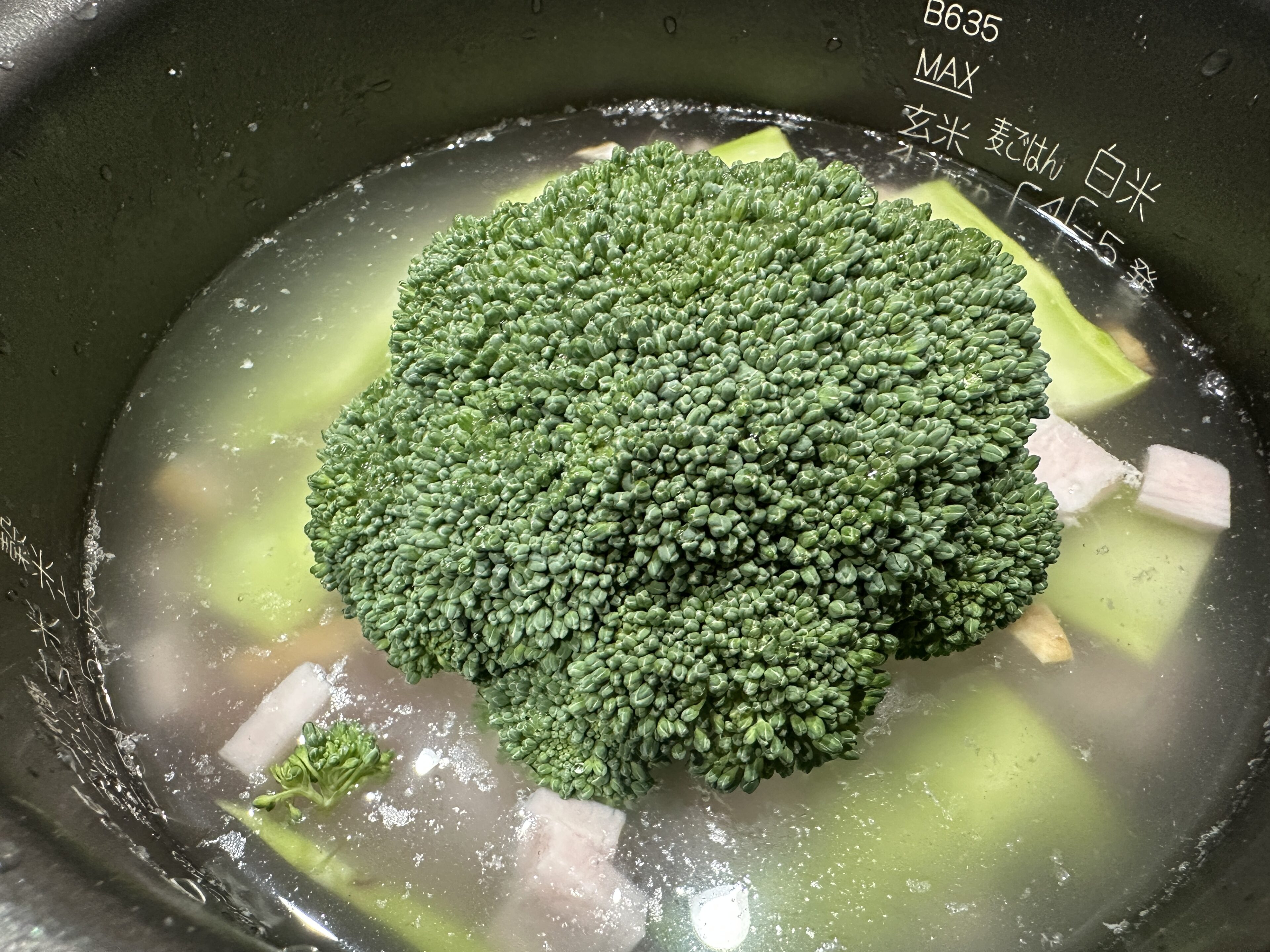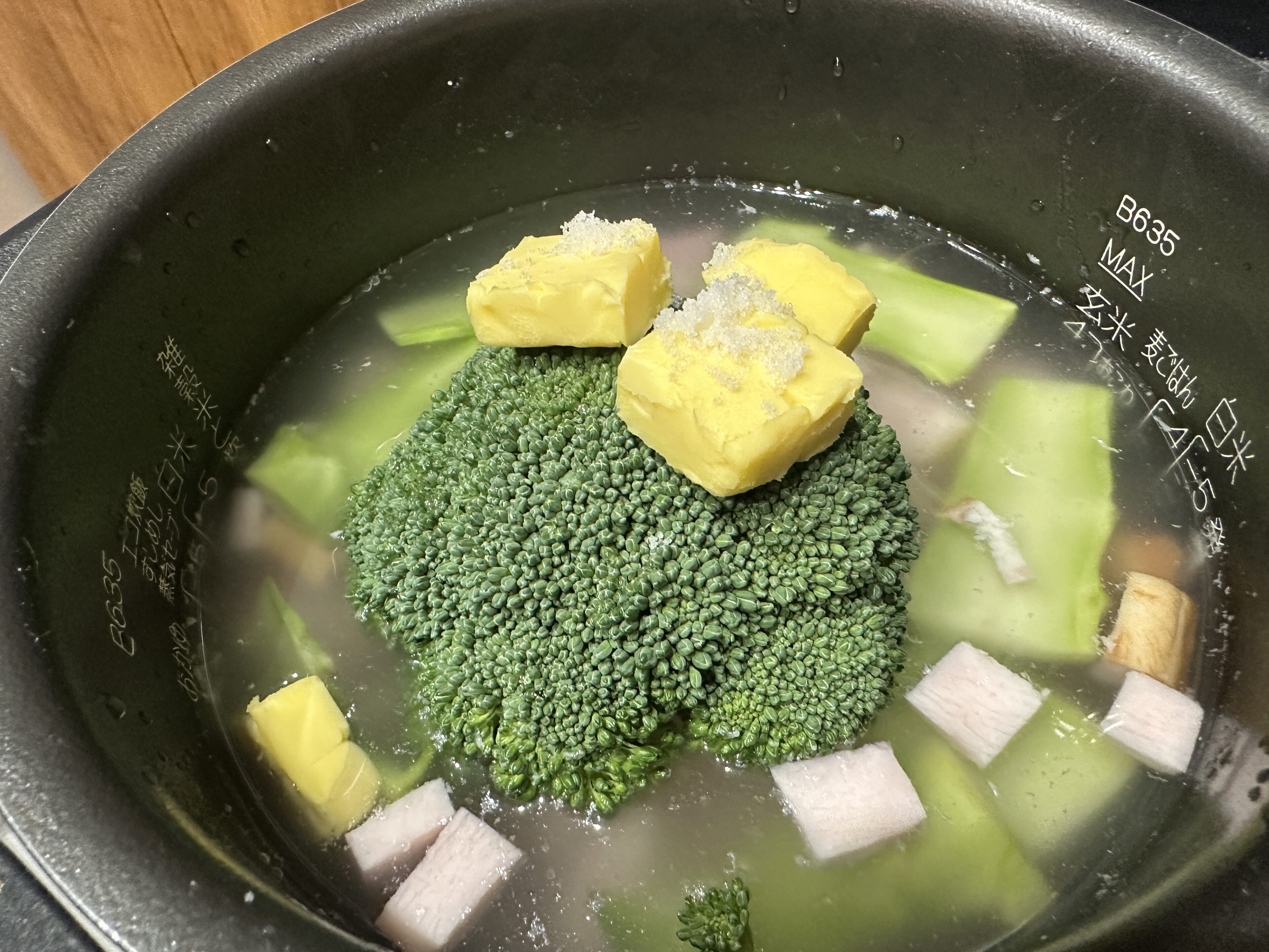 4)ブロッコリーを炊飯器に入れる