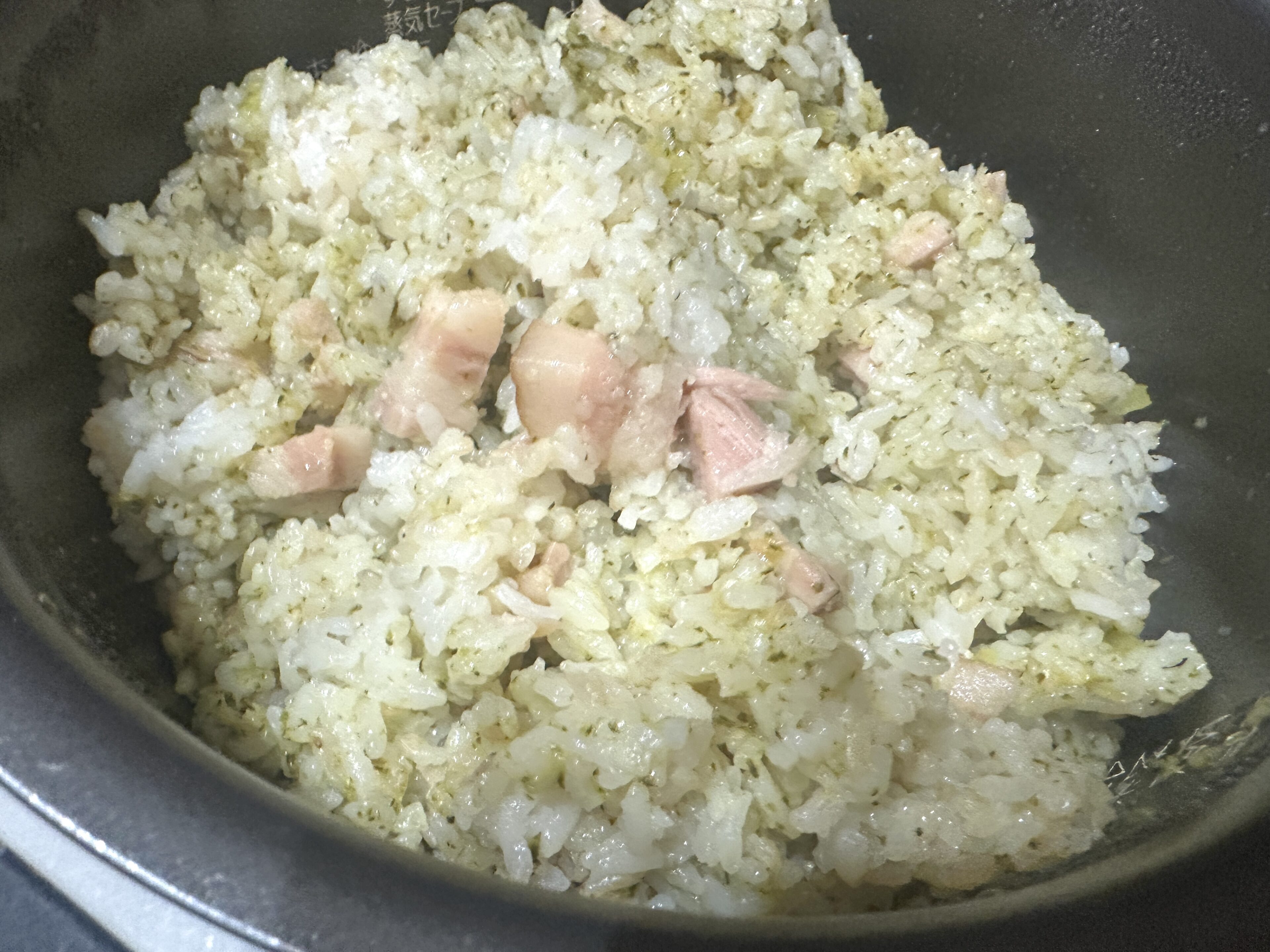 我が家は4合にしたので、全体的に味が薄めで、かき混ぜる時に味見をして、塩を少し足しました。