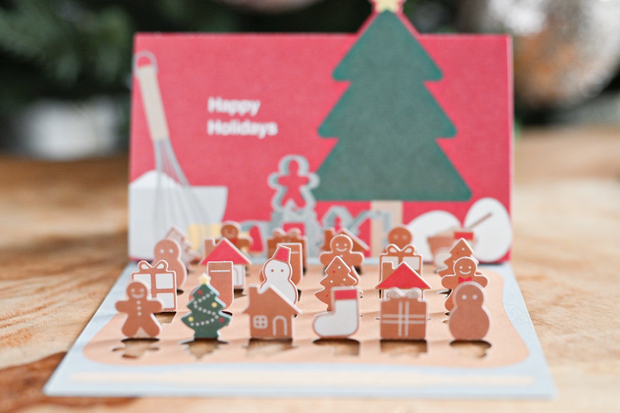 12月1日からスタートし、毎日ひとつずつモチーフを立ち上げて、クリスマスイブには華やかなカードが完成する商品です。