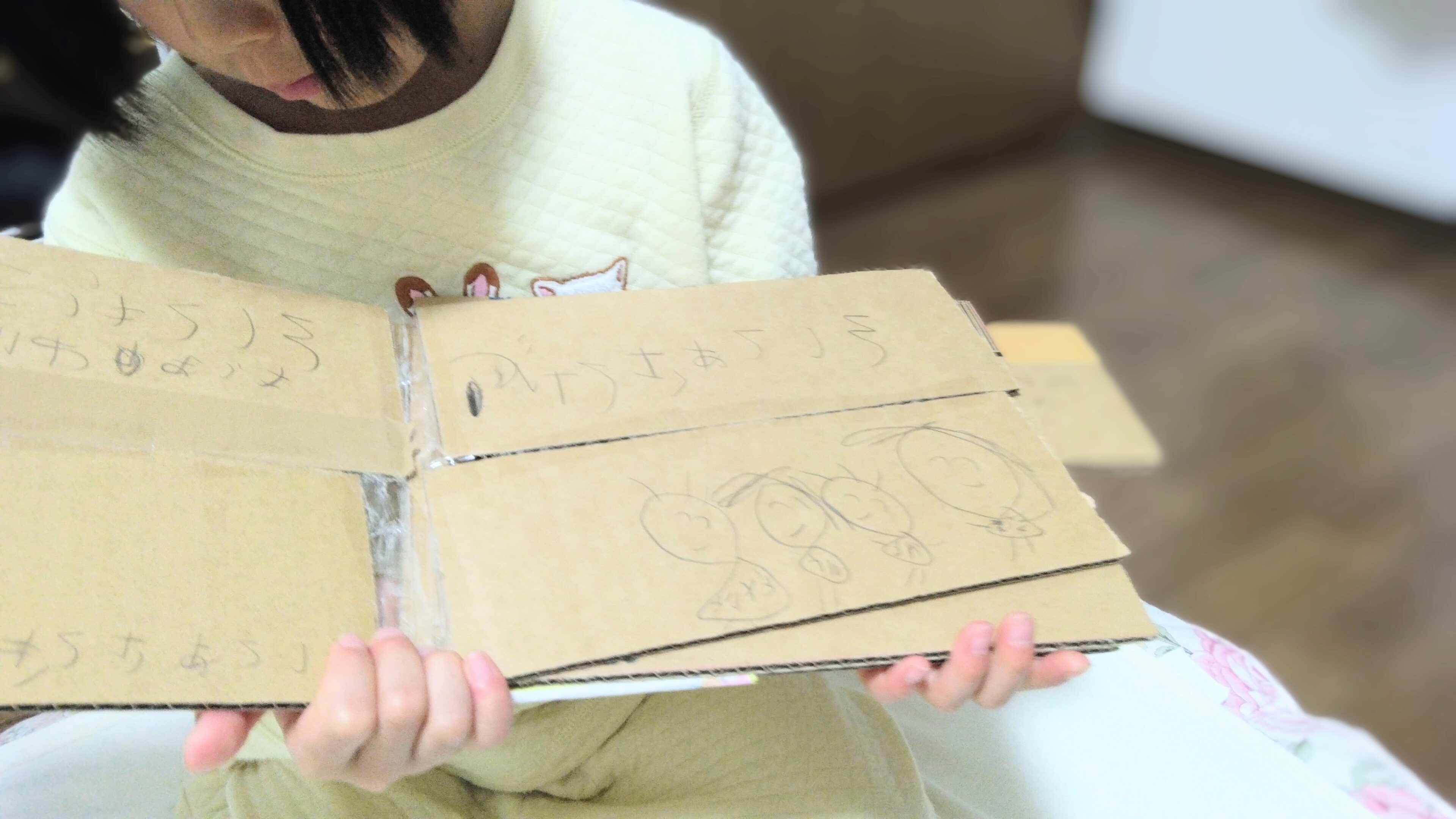 娘が作った絵本、正直なところ内容はちぐはぐです。字も習得の過程にあるため、本人しか読めないところが多々あります。それでも何度も何度も読み、全く飽きることがありません。