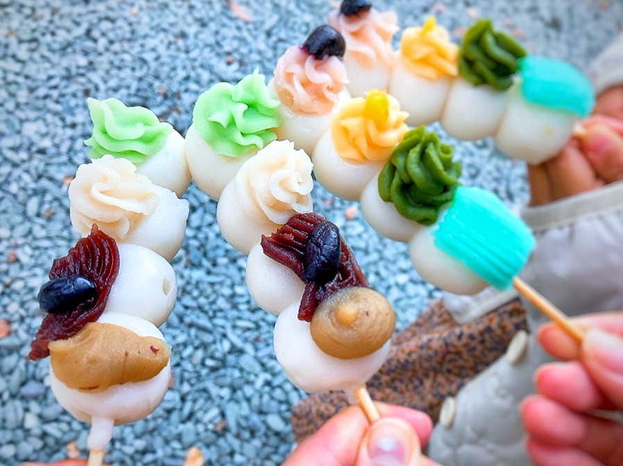 縁結びにもご利益があるという、川越熊野神社もお参り。神社の奥がフードコート風カフェとつながっていて、そこでTwinsご所望の「恋小江戸団子」も買えました。女の子だな~こういうの、好きだよね♡