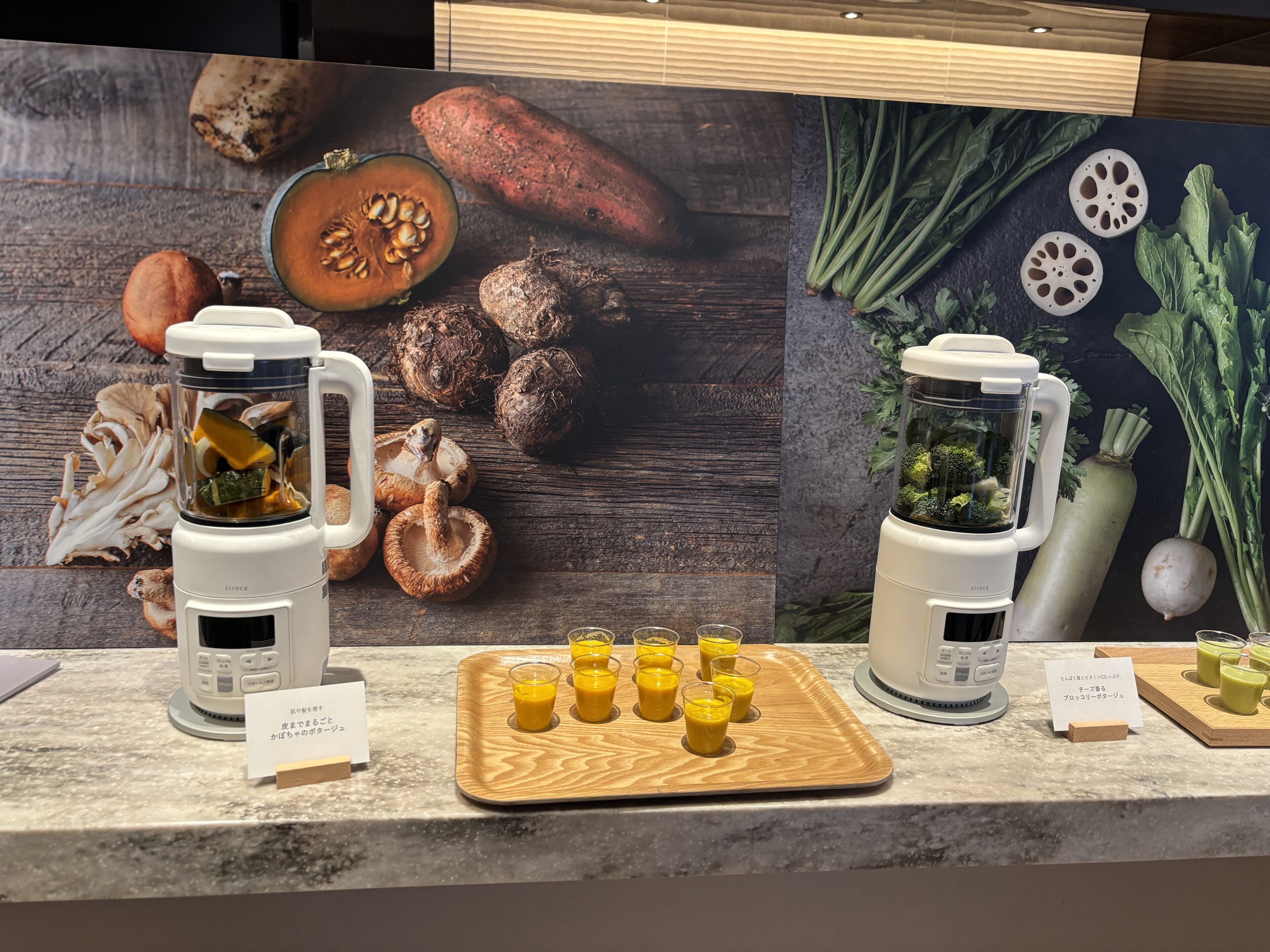このブレンダーで作ったスープが何種類か用意されており試飲させていただいたのですが、