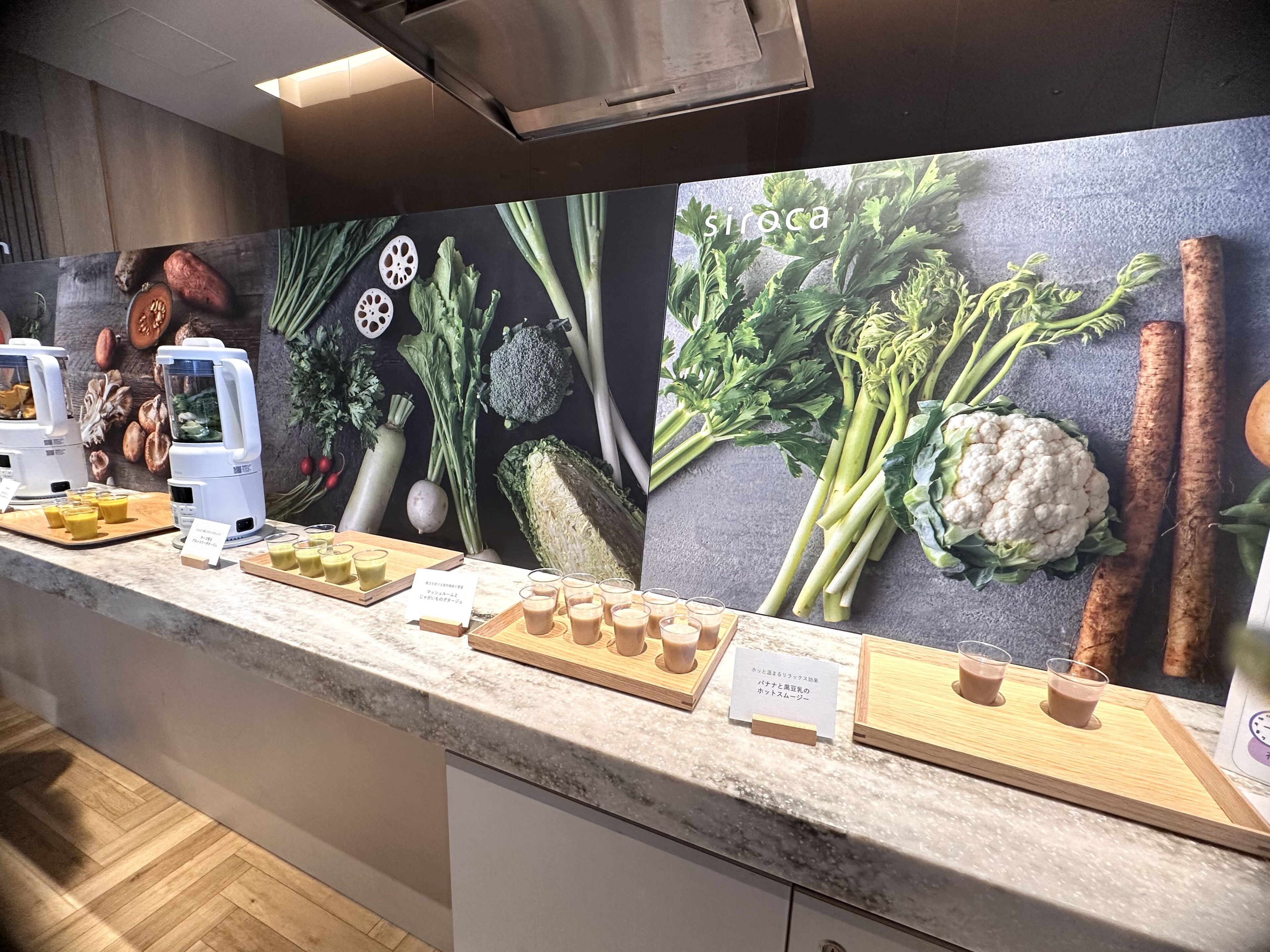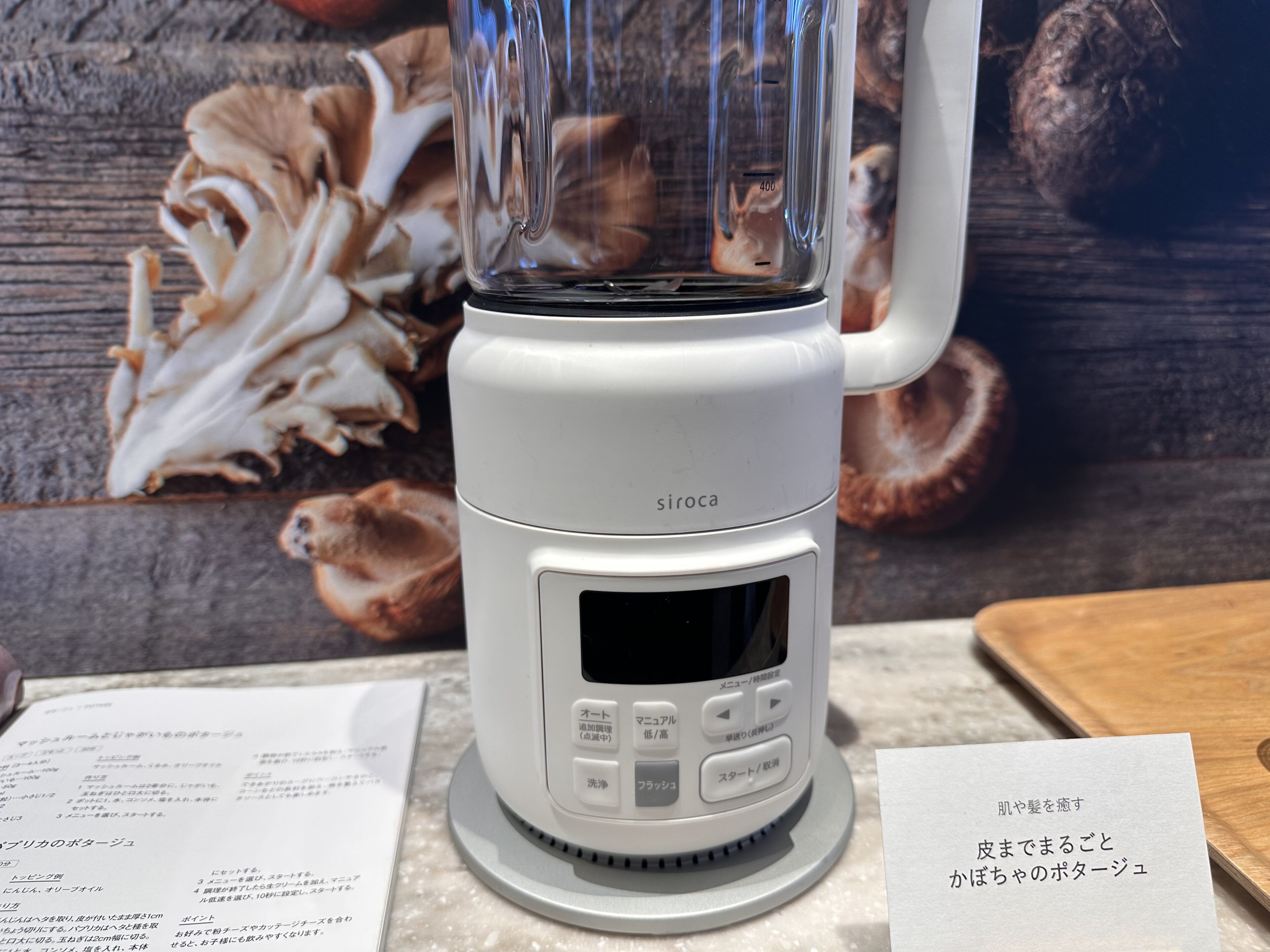ずらっと並べられた色鮮やかなスープの試食に誘われて訪れたsirocaさんのブースでは「おうちシェフ BLENDER」をご紹介いただきました。