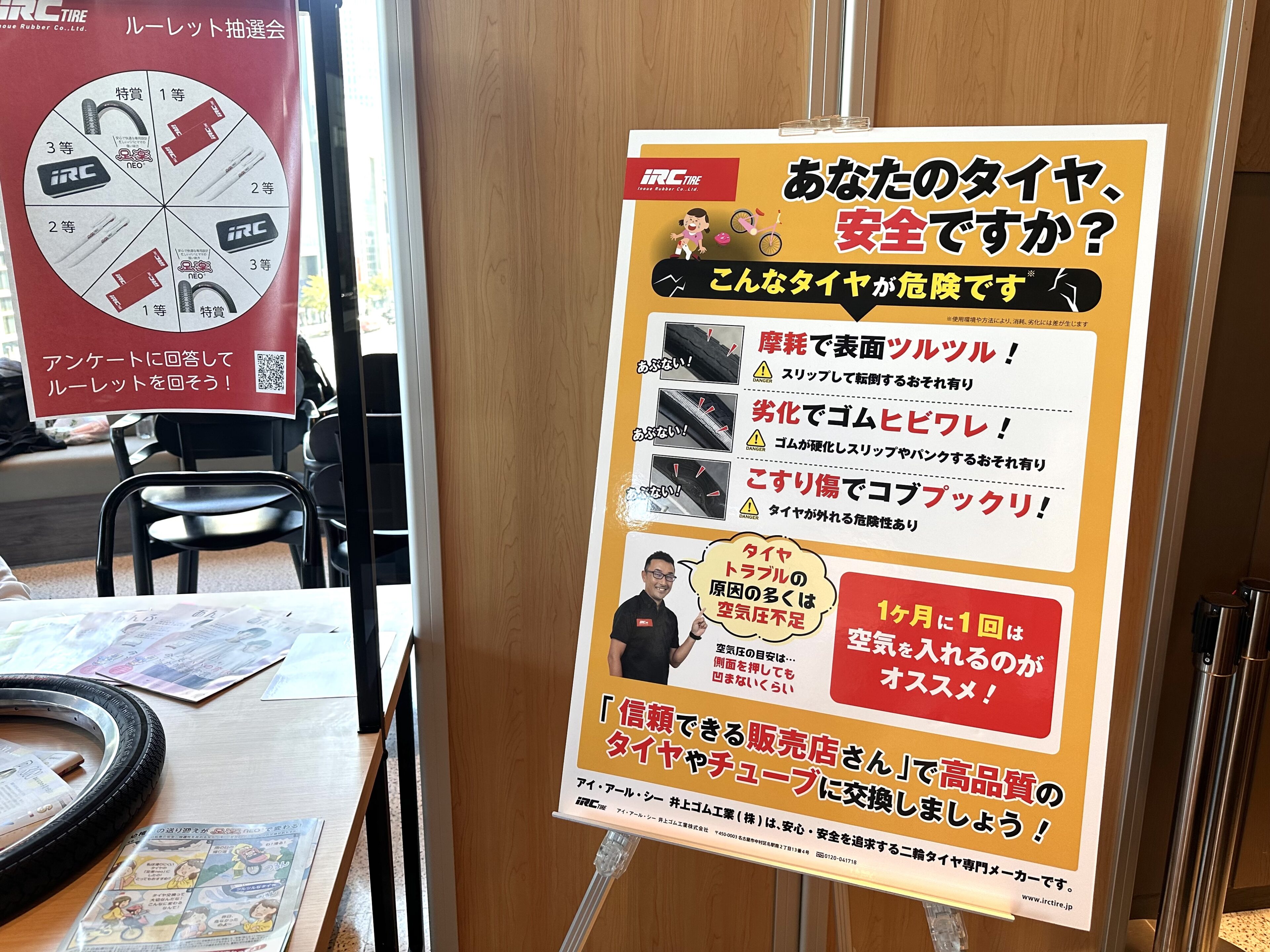 自転車タイヤのメーカー・井上ゴム工業さん。前回のSummerのときにはメンテナンスの重要性を教えてくださり自宅に帰ってすぐに夫と共有しました。今回は自宅のタイヤの写真を撮っていけば状態を診断してくださる…というお話だったのに、うっかり忘れてしまって残念でした。