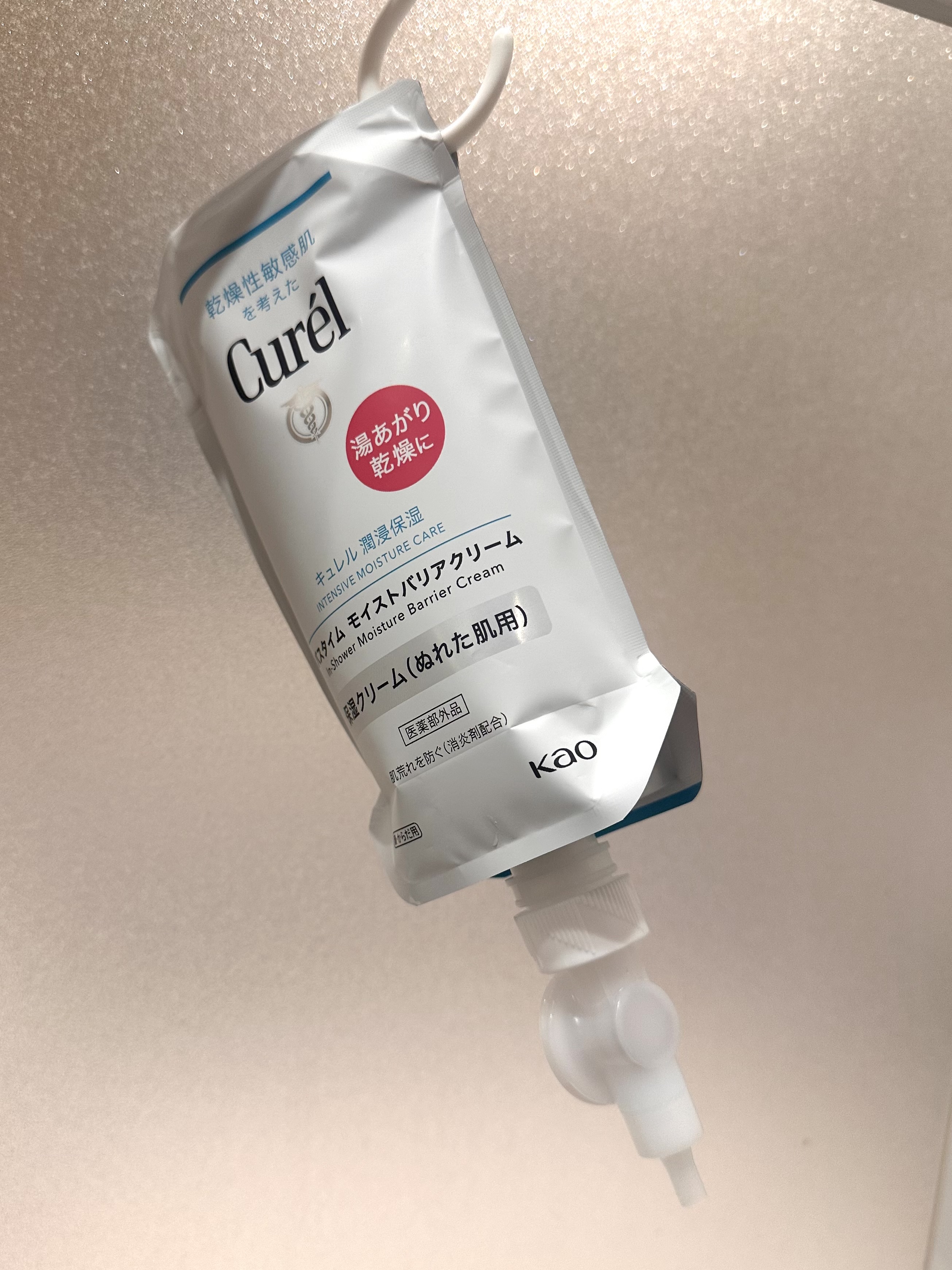 お風呂上がり前の濡れた肌に塗るという使い方で、実際に試すとサラッとなじみ自然な保湿感が続くように感じました。