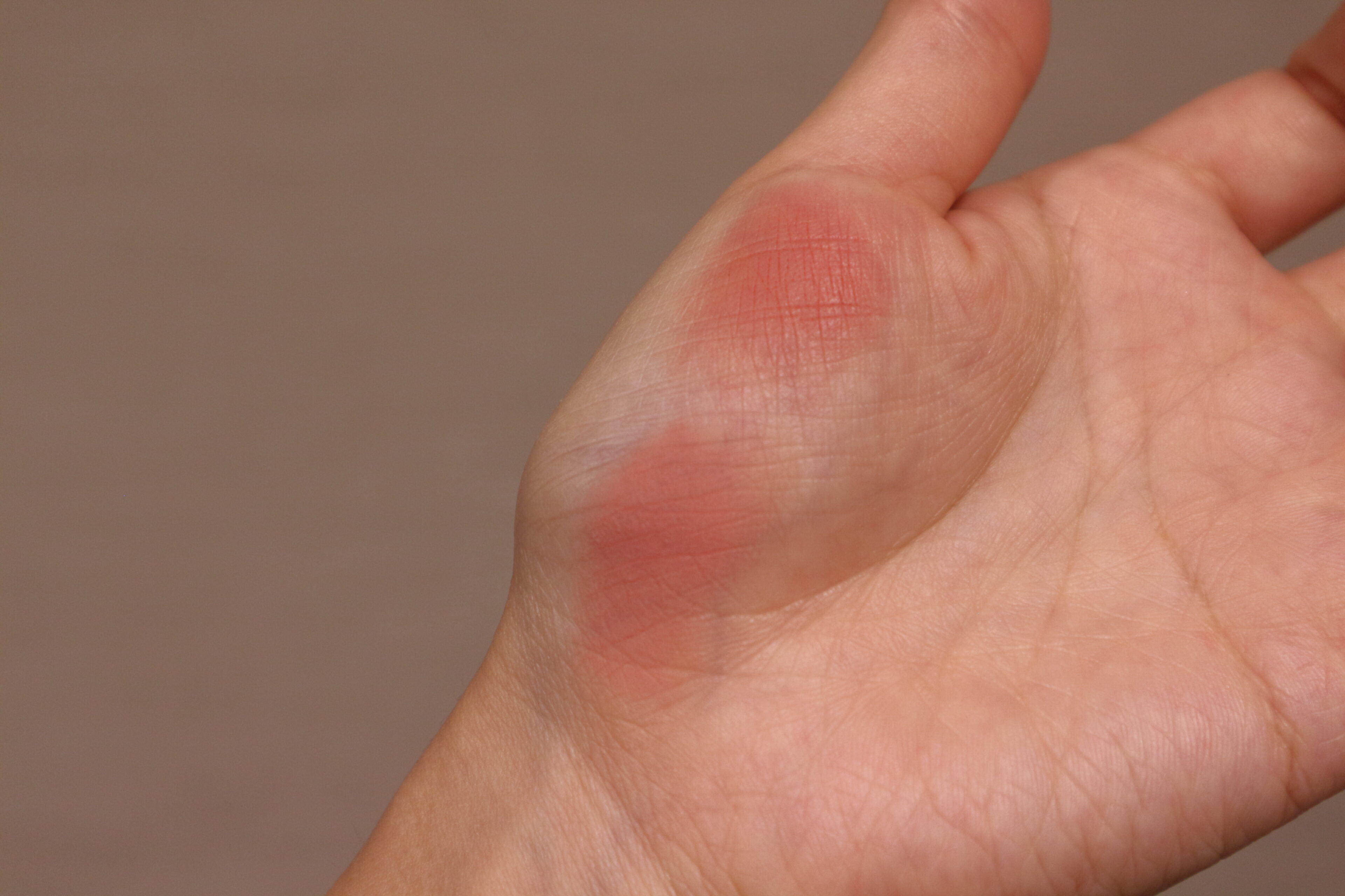 Fwee のチークは発色がとても良いので、手の甲に一度のせてから頬にのせると濃さの調整がしやすいです。
