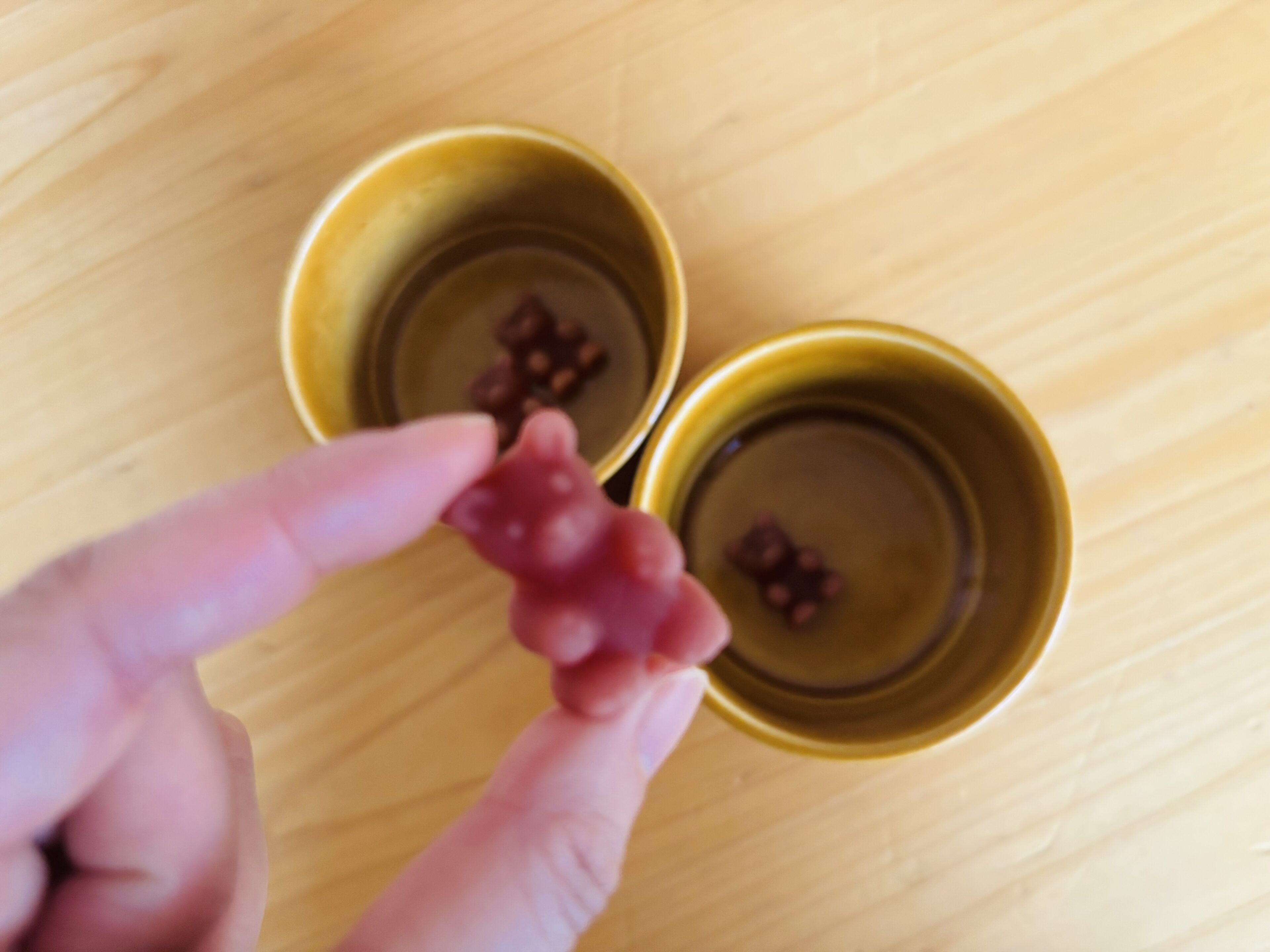 外側は少し固めで中はゼリーのようにぷるんと柔らかい、2層食感。お子さんのおやつとしては贅沢ですが(笑)、大人がゆっくり味わいたい、そんな特別感があります。