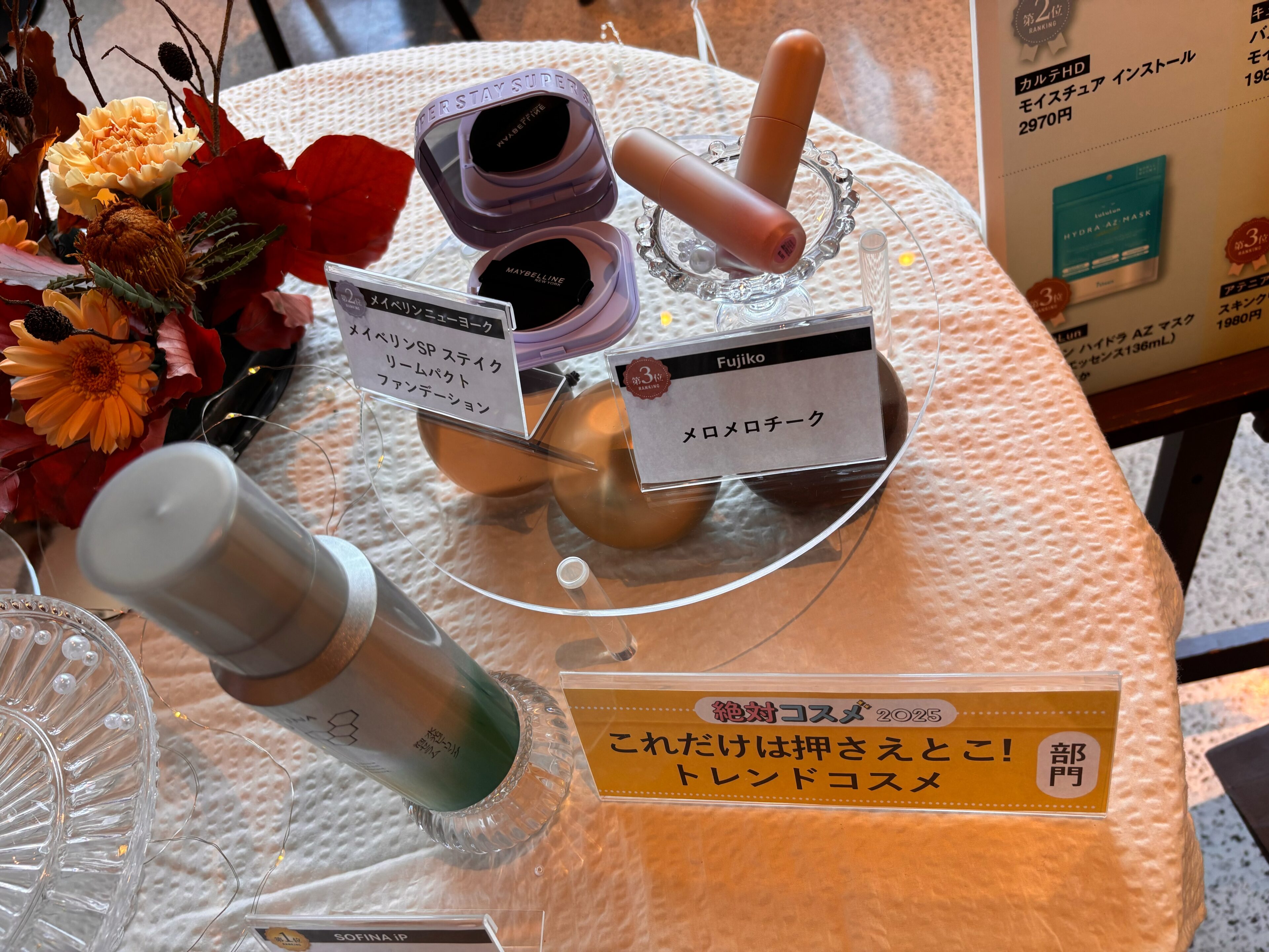 &あんふぁんのブロガーさんたち(美容・コスメチーム)が選んだ「絶対コスメ2025」は見応えたっぷり!会場には実際に試せるアイテムがたくさんそろっていて、「忙しいママでも使いやすい × 仕上がりがきれい」という視点が随所に感じられました。まず、私も普段から愛用している定番の3つはこちら。