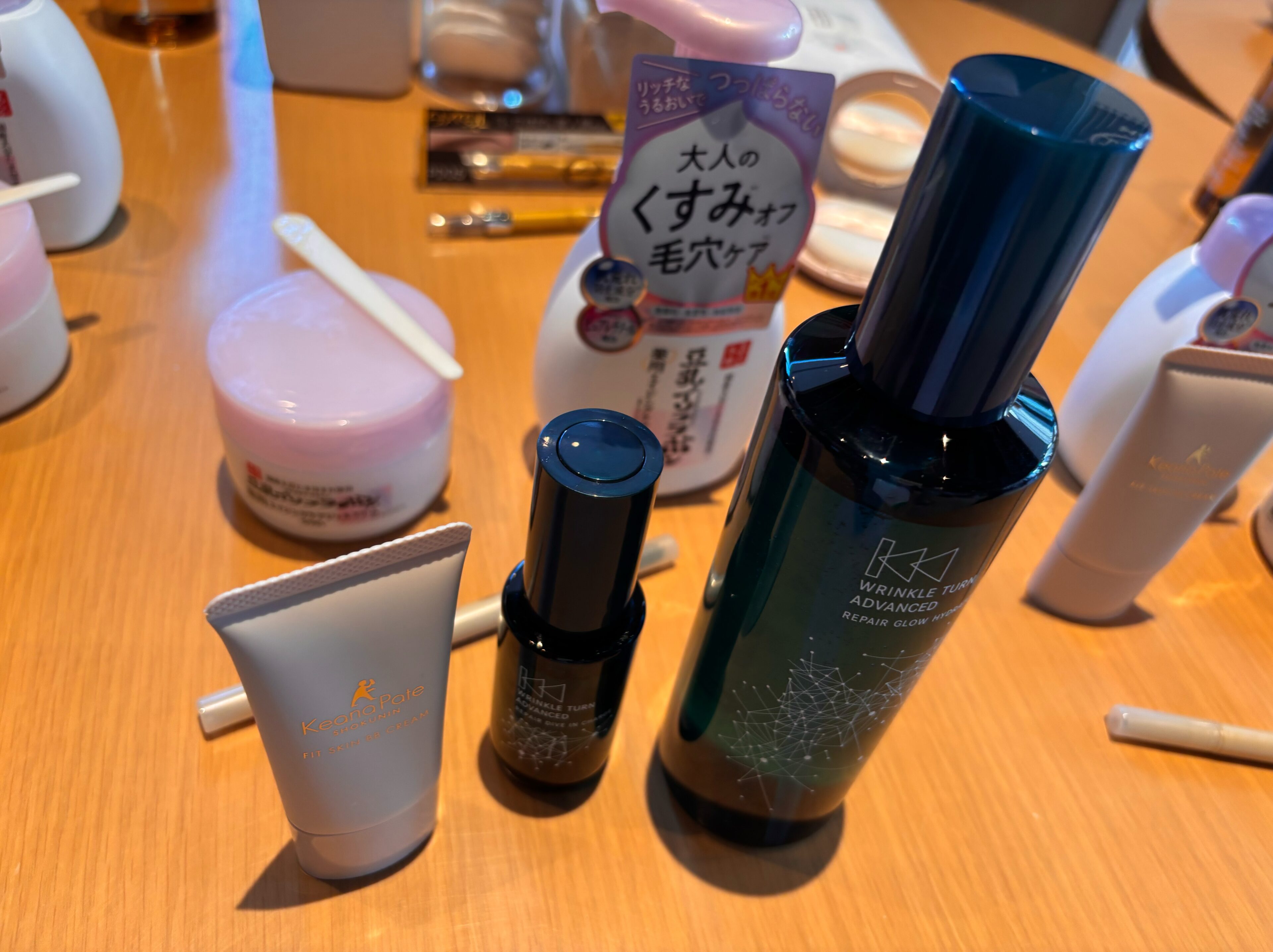 もう1つ試した「リンクルターン アドバンスト」は、美白としわケアの両方にアプローチする処方で、ハリのある肌を目指せるとうかがいました。化粧水はとろみがありながら肌なじみが良く、プッシュタイプで使いやすさも◎。ベルガモット&ユーカリの香りでスキンケア時間が少し贅沢に感じられそうです。