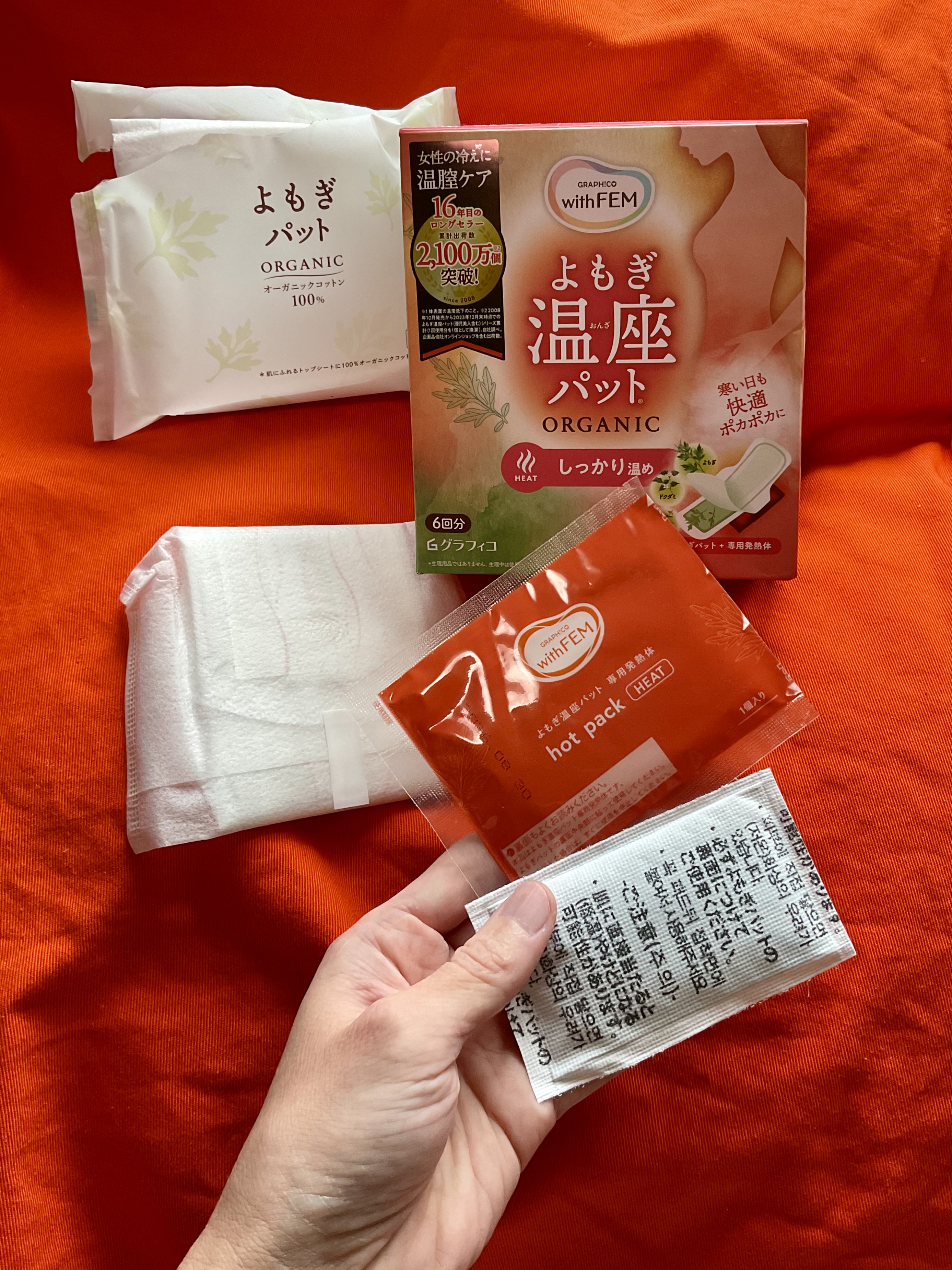 こちらは韓国伝統美容「よもぎ蒸し」から着想を得たアイテムです。下着に貼るパットと専用発熱体がセットになっていて、下腹部と骨盤まわりに温感を届ける仕様です。