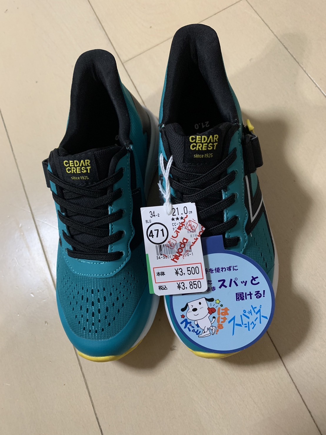 まわりでは、チラホラ靴紐タイプのシューズをはいているお友達もいますが、面倒くさがりの長男にはまだ早いかな〜という思いも。
