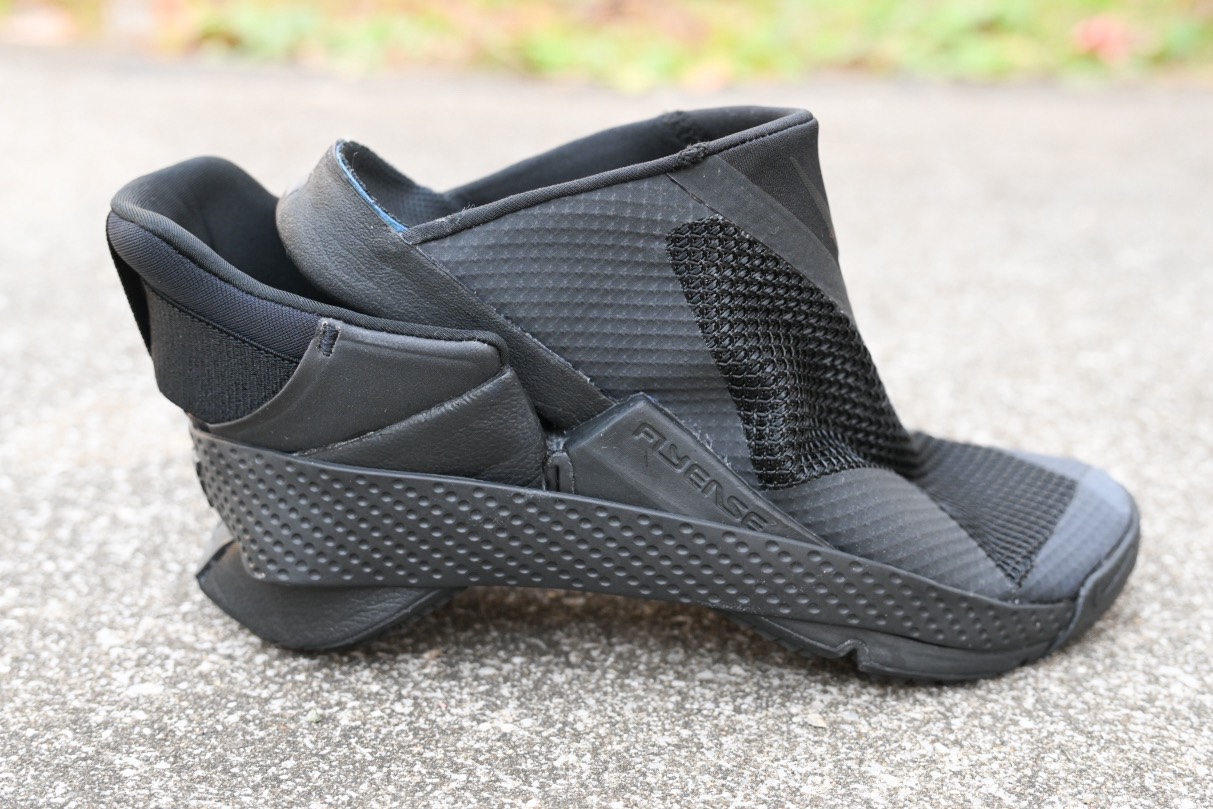 ・ヒール部分が回転軸で開くため、手を使わずに着脱可能