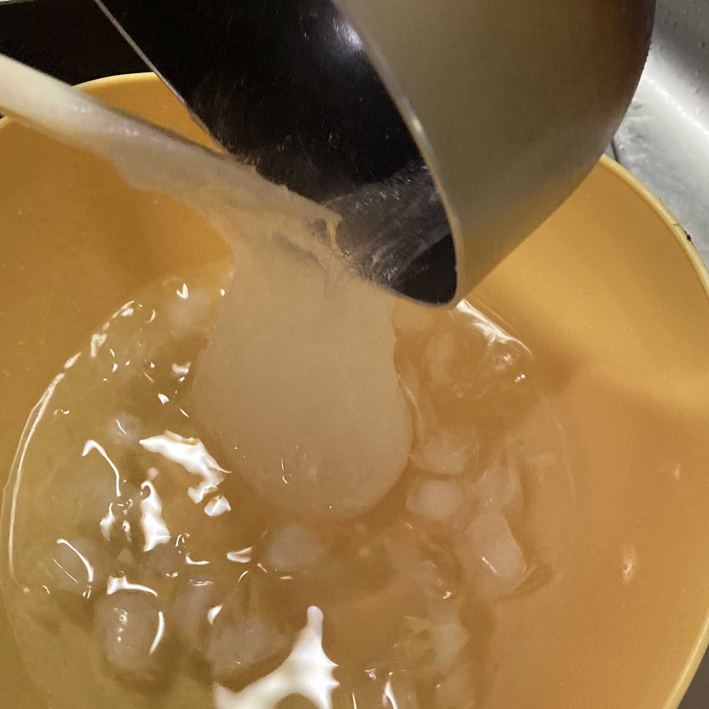 4.出来上がったわらびもちを氷水に入れ冷やします