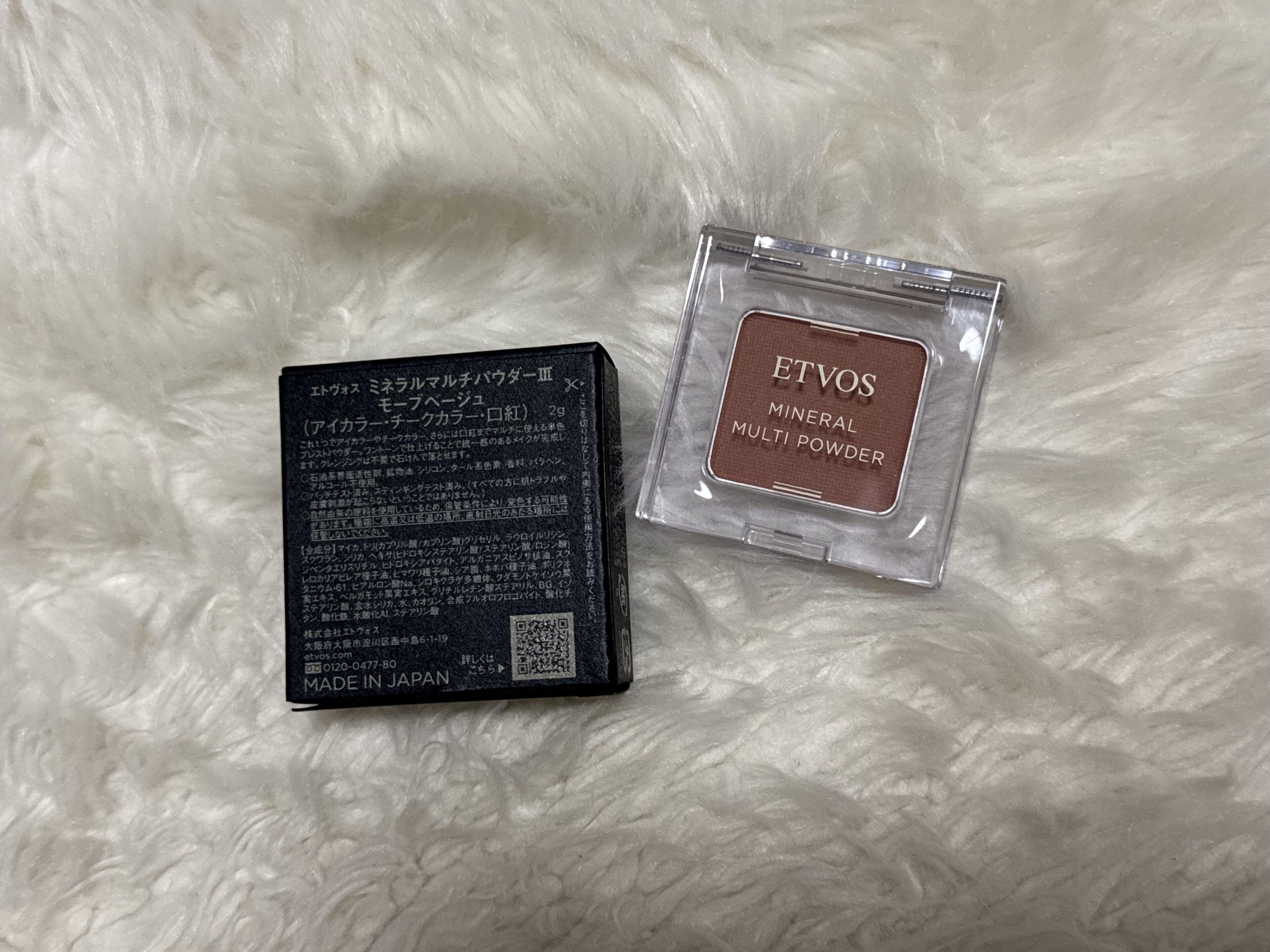今回使用したのは、ETVOS ミネラルマルチパウダー!「送迎だけの日の必須コスメ部門」です。