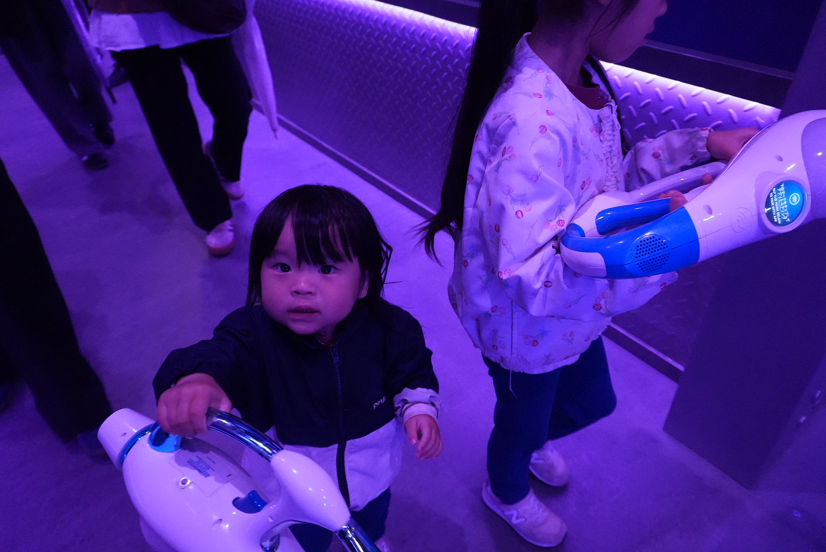 ブラスター操作は難しいため見て楽しむ形になりましたが、キャラクターが次々と目の前に現れ、終始指差ししながら夢中になっていました。