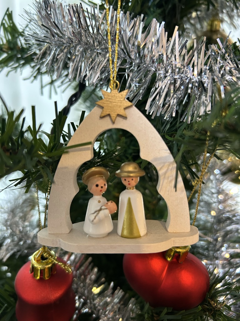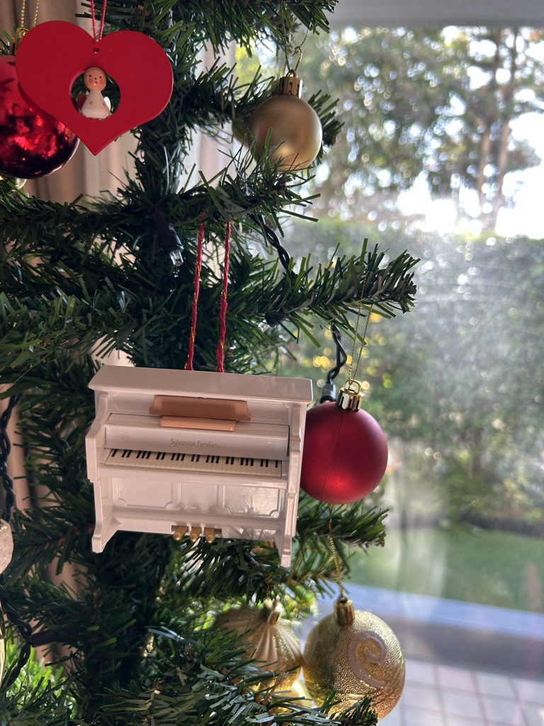 ですがなかなか気に入ったデザインのオーナメントがなかったので、お人形用のおもちゃのピアノをオーナメントに改造しました!子どもたちもとても気に入っています。