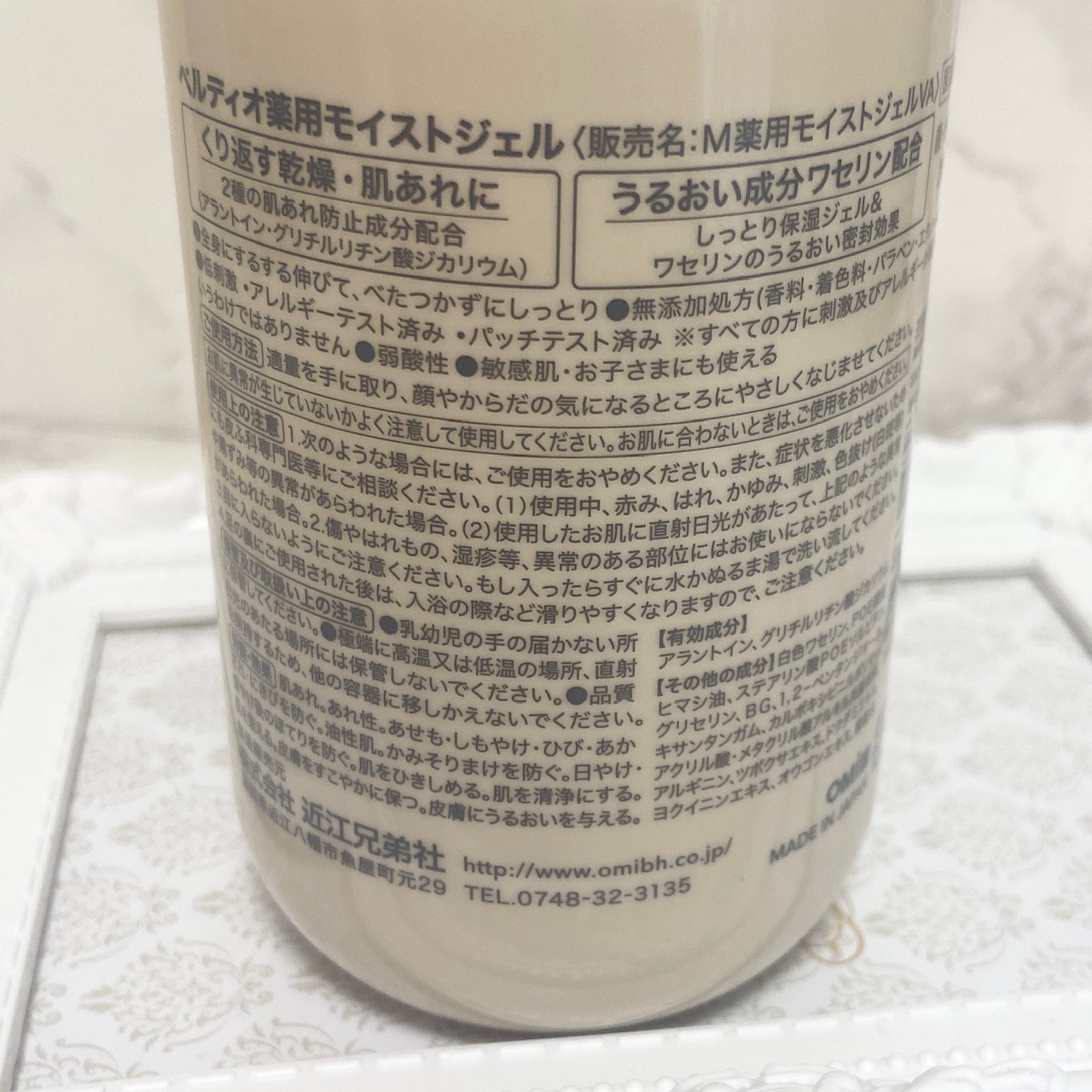 いま愛用中のアイテムが近江兄弟社「メンターム ベルディオ薬用モイストジェル」内容量:200g 価格:1320円です。