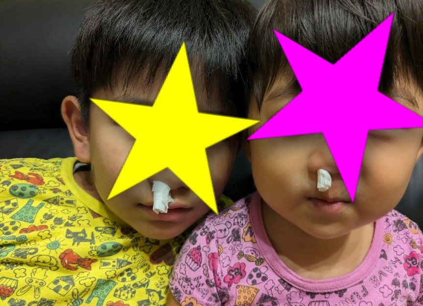 長女は終始元気でその後も様子をみましたが、特に変わったことはなくご飯もよく食べ、以降は鼻血を出すこともありません。きっと勢いよく鼻をかんだ拍子に血が出てしまい、鼻つっぺの出し入れが刺激となったせいで鼻血がなかなか止まらなかったのかな、と思います。