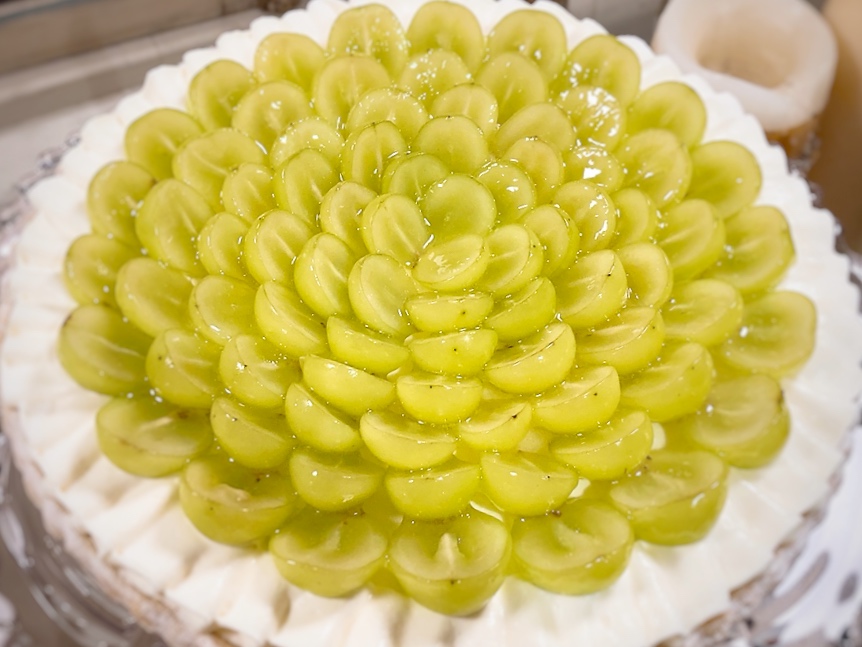 ジュエリーのように粒が輝く、シャインマスカットとフリルクリームのタルトは、まろやかなホワイトチョコ風味がポイント。甘いのかな?と思いきや、ミルキーな優しさが、シャインマスカットの弾ける爽やかさを見事に包み込みます。これがまた、「スペシャル・キュヴェ」とも相性抜群。シャインマスカット尽くしのタルトとシャンパーニュ、まさに一夜限りのお姫様気分です…。