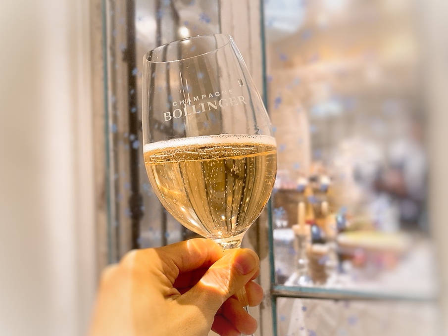 まずは、「スペシャル・キュヴェ」で、ボランジェ流に「ボリー!」と乾杯!繊細な泡が立ち上るグラスをひと口、なんて幸せな瞬間でしょう…!!