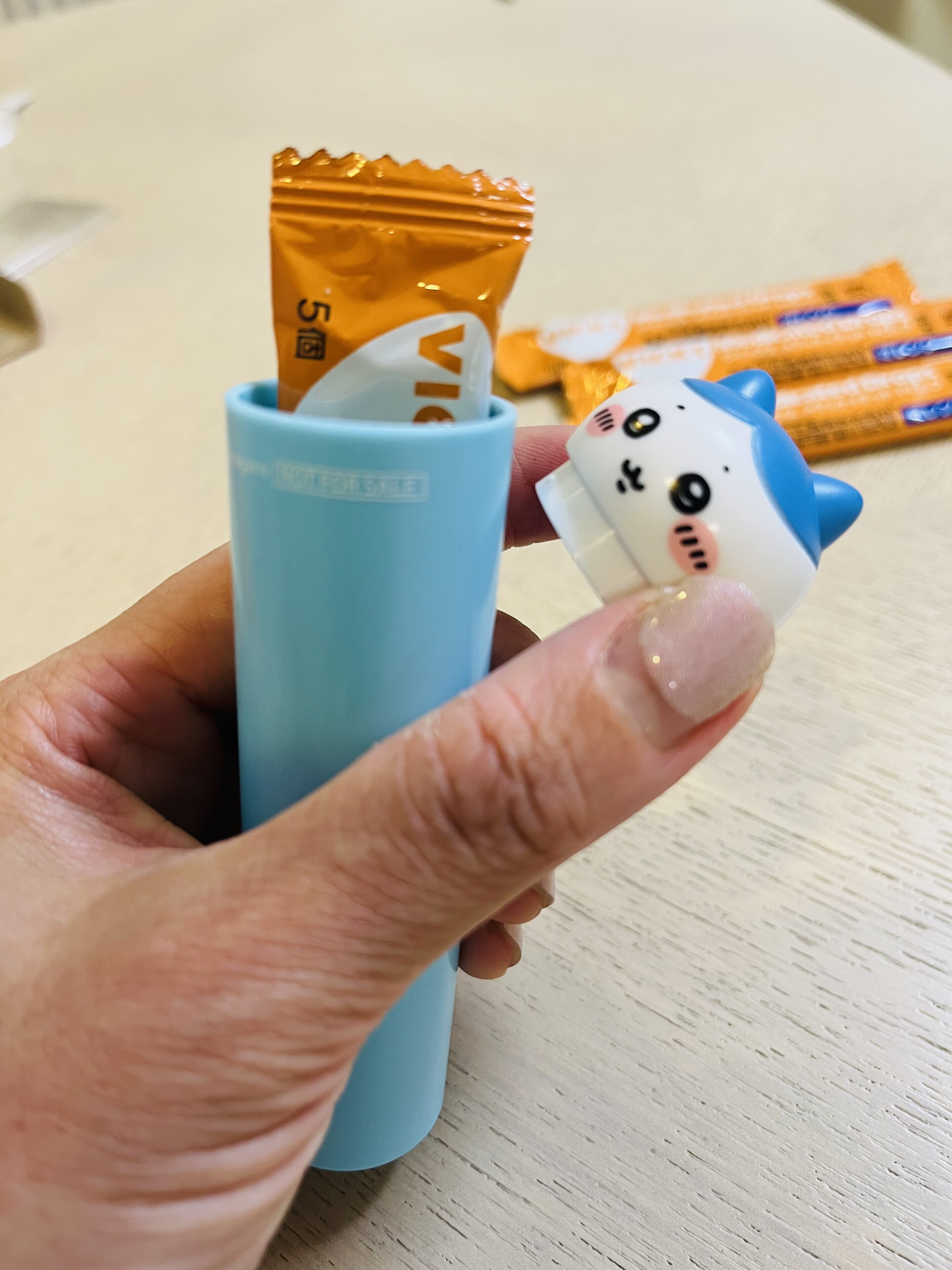 私は「ハチワレのほほえみバージョン×オレンジ味」を、近所のウエルシア薬局で購入。子どもたちがオレンジ味のキャンディー好きなのと、ハチワレの表情がかわいすぎて選びました。