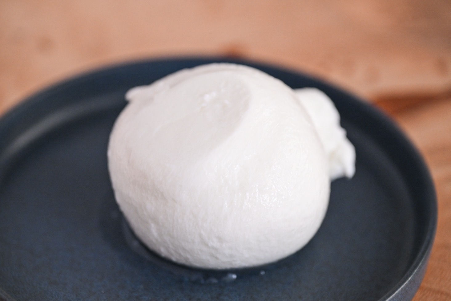 解凍したあとのブッラータは、ナイフを入れると中からとろとろ濃厚なチーズが現れますよ。