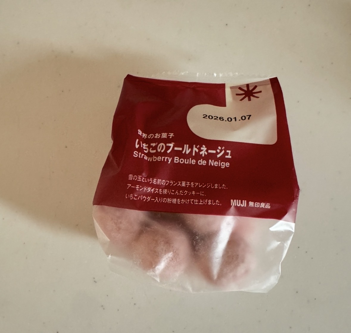 さくさくほろほろの甘い砂糖菓子で、ほんのりいちごの味が冬らしくて美味しい!