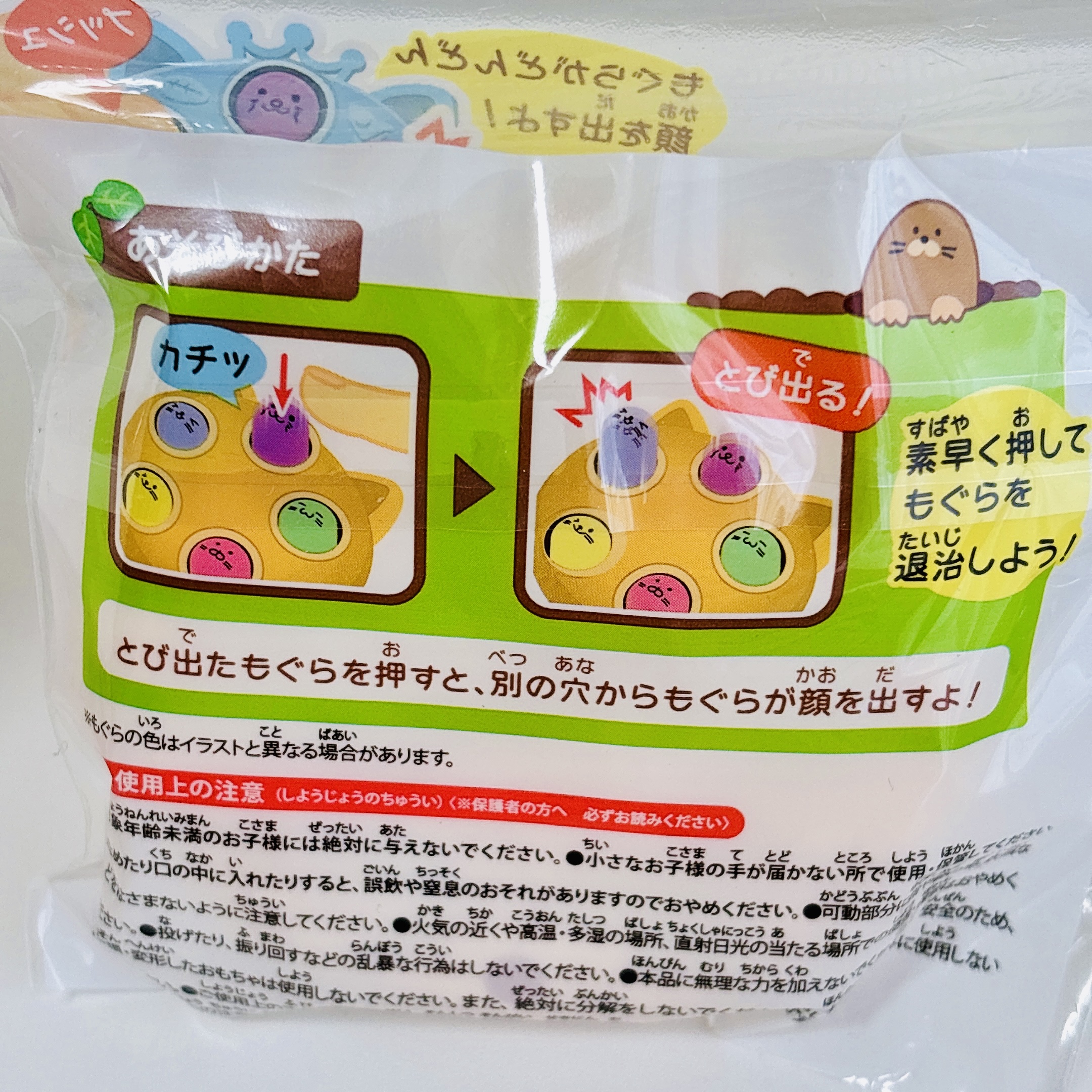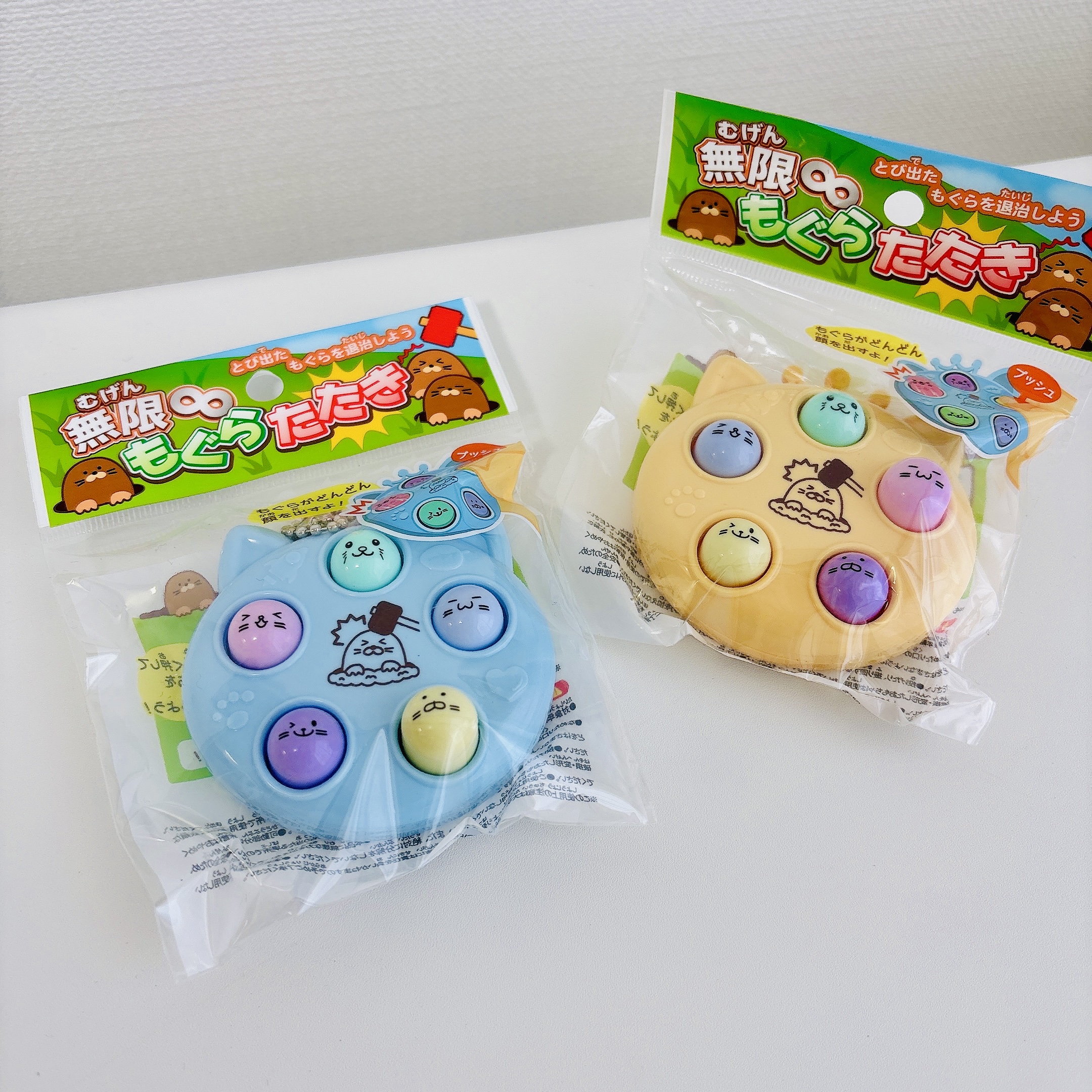 こちらも、一人で遊ぶおもちゃです!同じく、移動時に便利なおもちゃ。飛び出たモグラを退治するのですが、飛び出たモグラを押すと別の穴からモグラが飛び出す仕組み。押しても押しても出てくる出てくる…永遠に遊べちゃうおもちゃ!飽きたら終了。こちらも見た目がかわいいいので、おでかけのお供にぜひ!