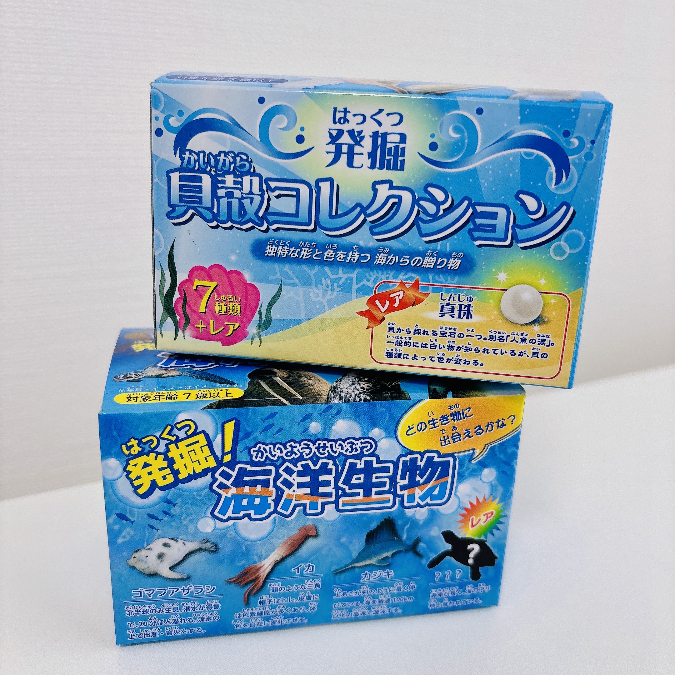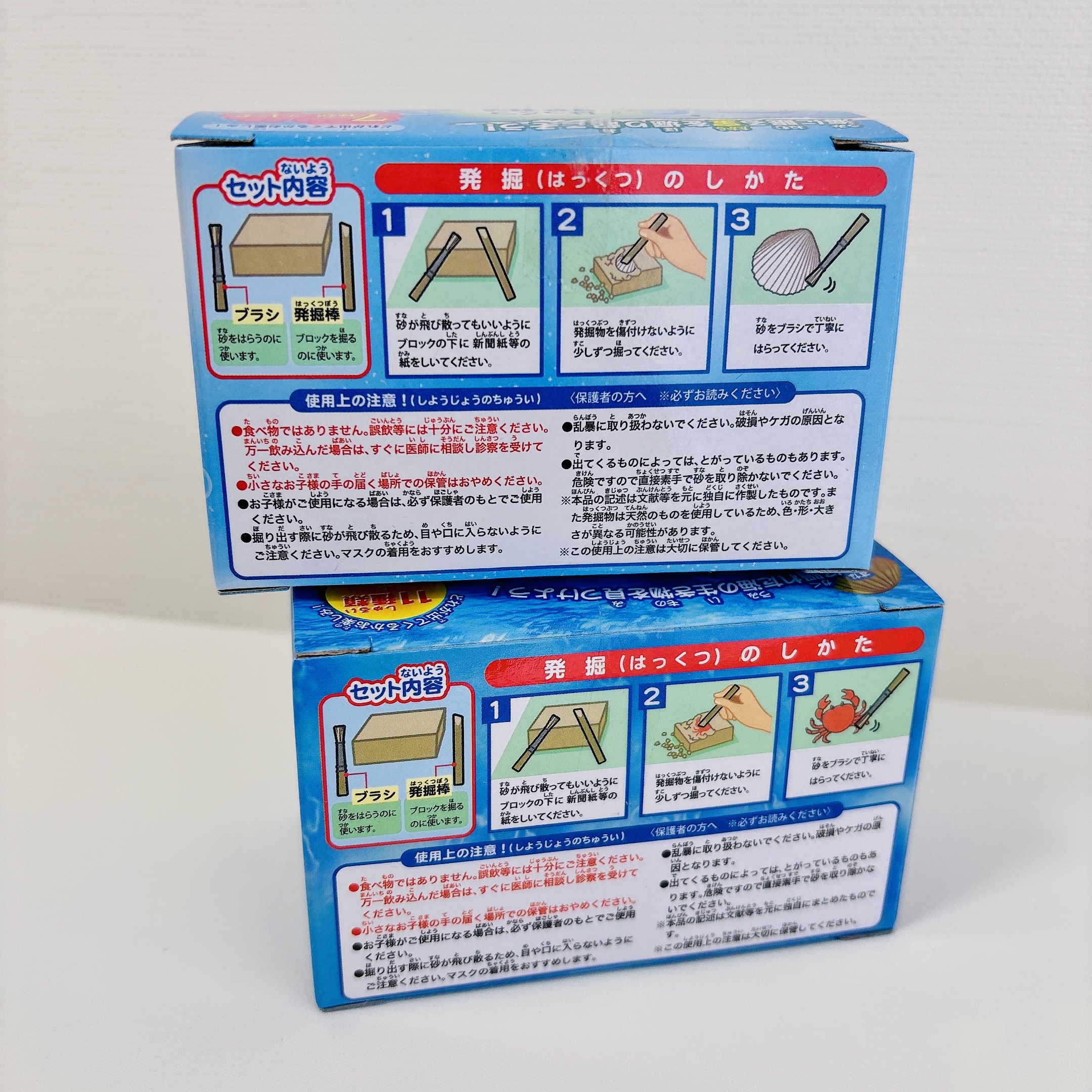 発掘体験が家でできるこのキッド!なんとこちらも100均で手に入ります!固めた砂の中に貝殻や海洋生物の発掘物が入っています。セットに入っている発掘棒を使って掘っていきます。何が出てくるかのドキドキ感と、掘っていく楽しみ!お家で体験できるのはすごい~。砂が散らばるので、新聞紙などを敷いてやるのをおススメします!レアなものが出てくるか?親子で発掘はいかがでしょうか?