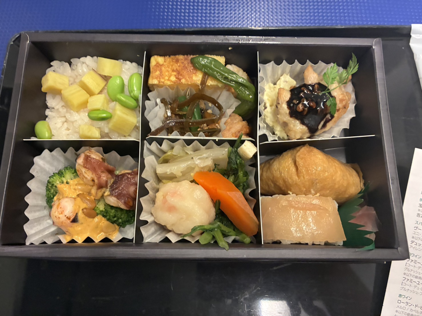 機内では空弁&味噌汁まで!おもちゃ付きで大満足