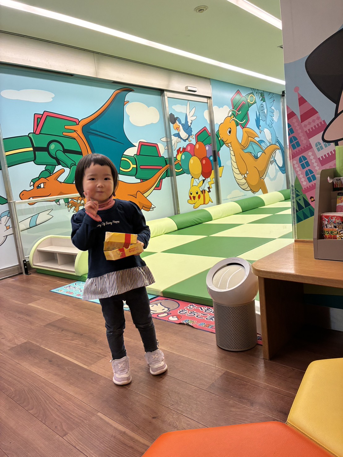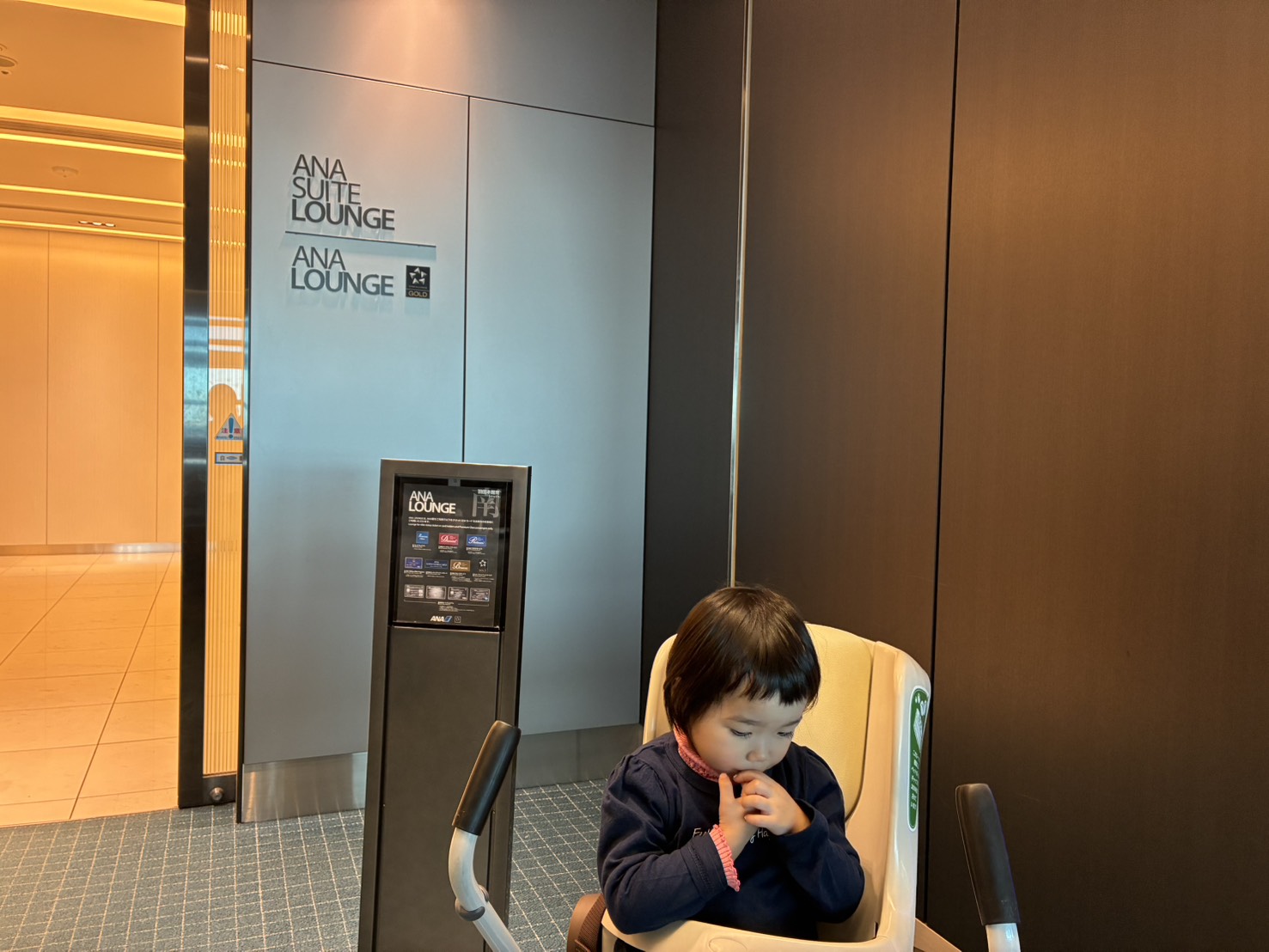 プレミアムクラス搭乗者はANAのラウンジも利用OK!今回は「ANA ポケモン Kids TV ラウンジ」のある、国内線第2ターミナルの《ANA LOUNGE(本館南)》へ。中にあるは、娘にとって夢の空間でした!絵本やポケモンアニメの上映コーナー、柔らかいマットスペース、さらに中でもドリンクや軽食OK。娘は遊んでは休憩して、また遊んで…と忙しそうにフライト前の時間を楽しんでいました。搭乗までの時間、退屈どころか「もっと遊びたい〜」と言われるほど(笑)。ただし、ラウンジ内はかなりの混雑だったので、飲み物を取りに行くのはちょっと大変でした…!