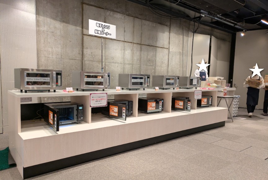 会場内には数か所に電子レンジが設置されているのですが、開場してから最初の30分は電子レンジ待ちの方が特に多く、開場前に寒い中並ぶのは大変でしたが早めに選んで電子レンジ難民になることなくスムーズかつ効率的にチン!できたので、来場される方には早めの到着をオススメしたいです。