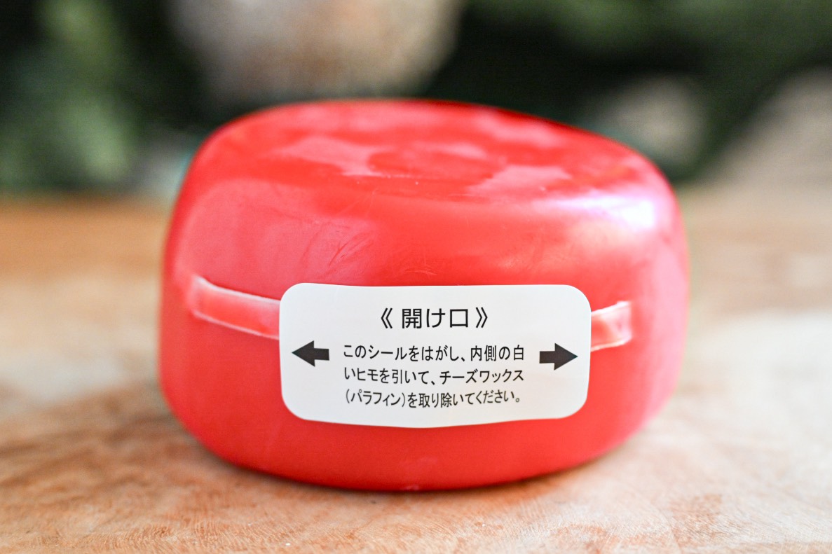 赤いチーズワックスの取っ手を引っ張って開封するスタイルもユニークです。